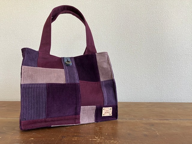 トートバッグ(S) 紫コーデュロイ 珍しい色合わせです。 濃いめの紫やマットなピンクを4色合わせました。 Sサイズ W26×H20×D16cm <BLUEWORKSのトートバッグのご説明> 古着のデニムをパッチワークで繋ぎバッグに仕立てています。 5〜6色の色を合わせて作るバッグなので色の合わせ方で表情が違ってきます。 シンプルなインディゴやブルーも当然ながら、カラーデニムを使った限定色もたまに出没します。 トートバッグって機能的ですよね! BLUEWORKSのトートバッグはサイドにジーンズのポケットが付いています。 そんなにたくさんの物が入るポケットじゃないけど、何気に便利です。 そしてこのサイドにポケットを付けたくてこの「まち」の広さと「四角」の形なんです。 内側にはメッシュの大きなポケット、小分け用のポケットが付いていて使いやすさ抜群です。 取り外せる中敷が付いていますので重たい物を入れてもしっかり持てます。 注意として、 使うごとに柔らかくなっていきます。 布のバッグですのでご承知くださいませ。 洗っていただくことは可能です。 柔らかさが気になる方はお洗濯の際、糊付けをしていただくと多少固さが戻ります。 修理などご要望の方はご連絡いただければご相談受け付けます。 店頭にて同時販売しておりますので、品切れの際にはご了承ください。