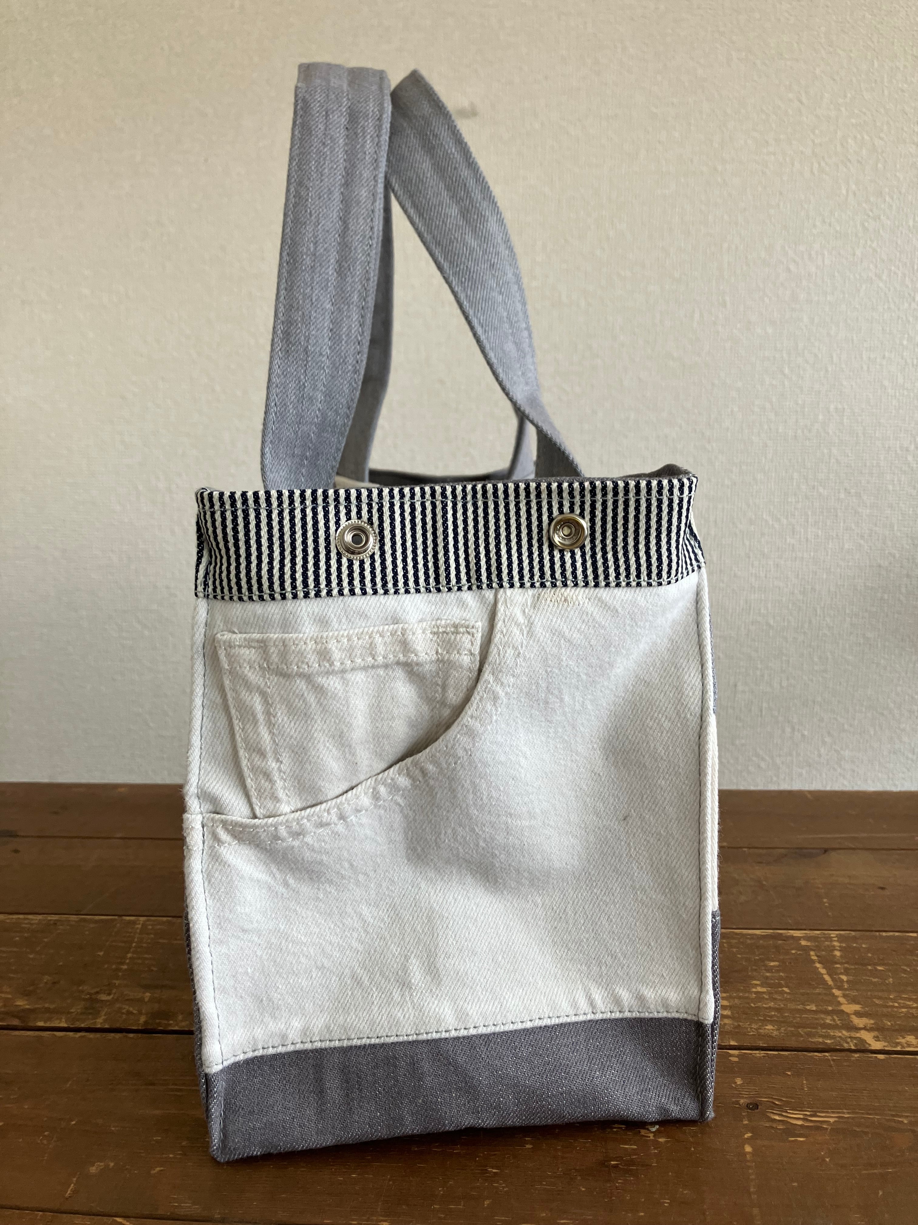 古着のデニムをパッチワークで繋ぎバッグに仕立てています。