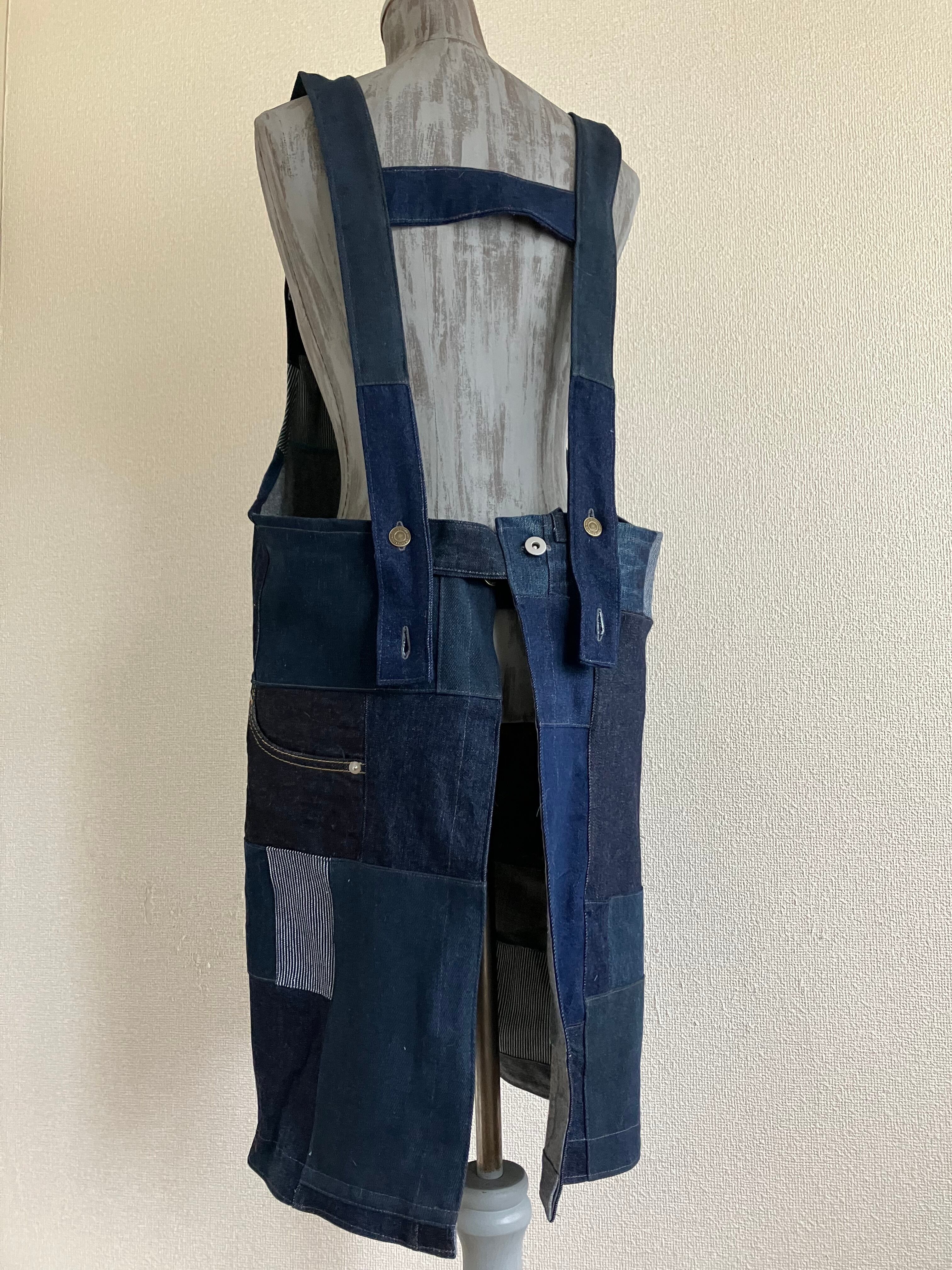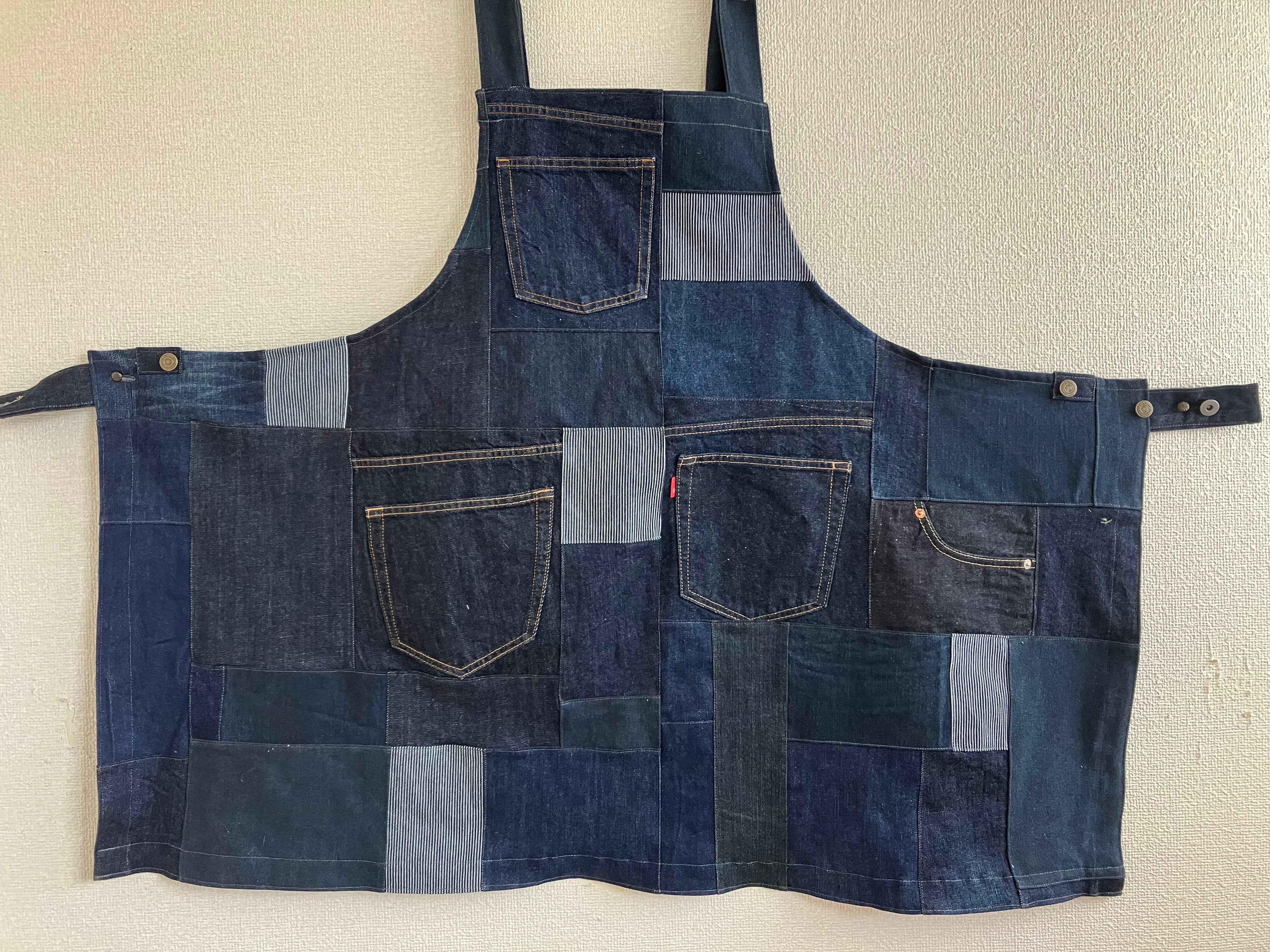 パッチワークエプロン ネイビー①
