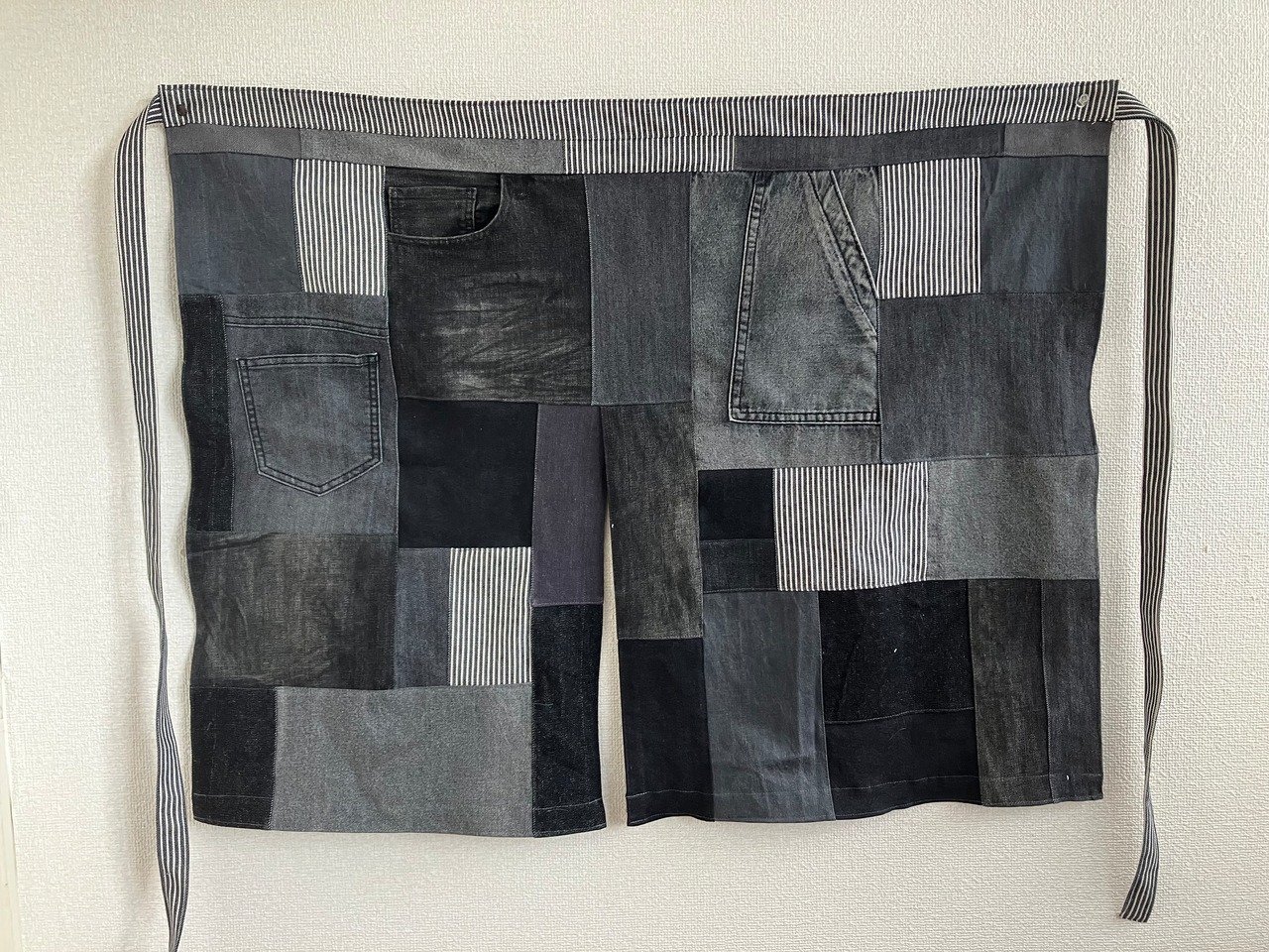 パッチワークエプロンのギャルソンタイプ。