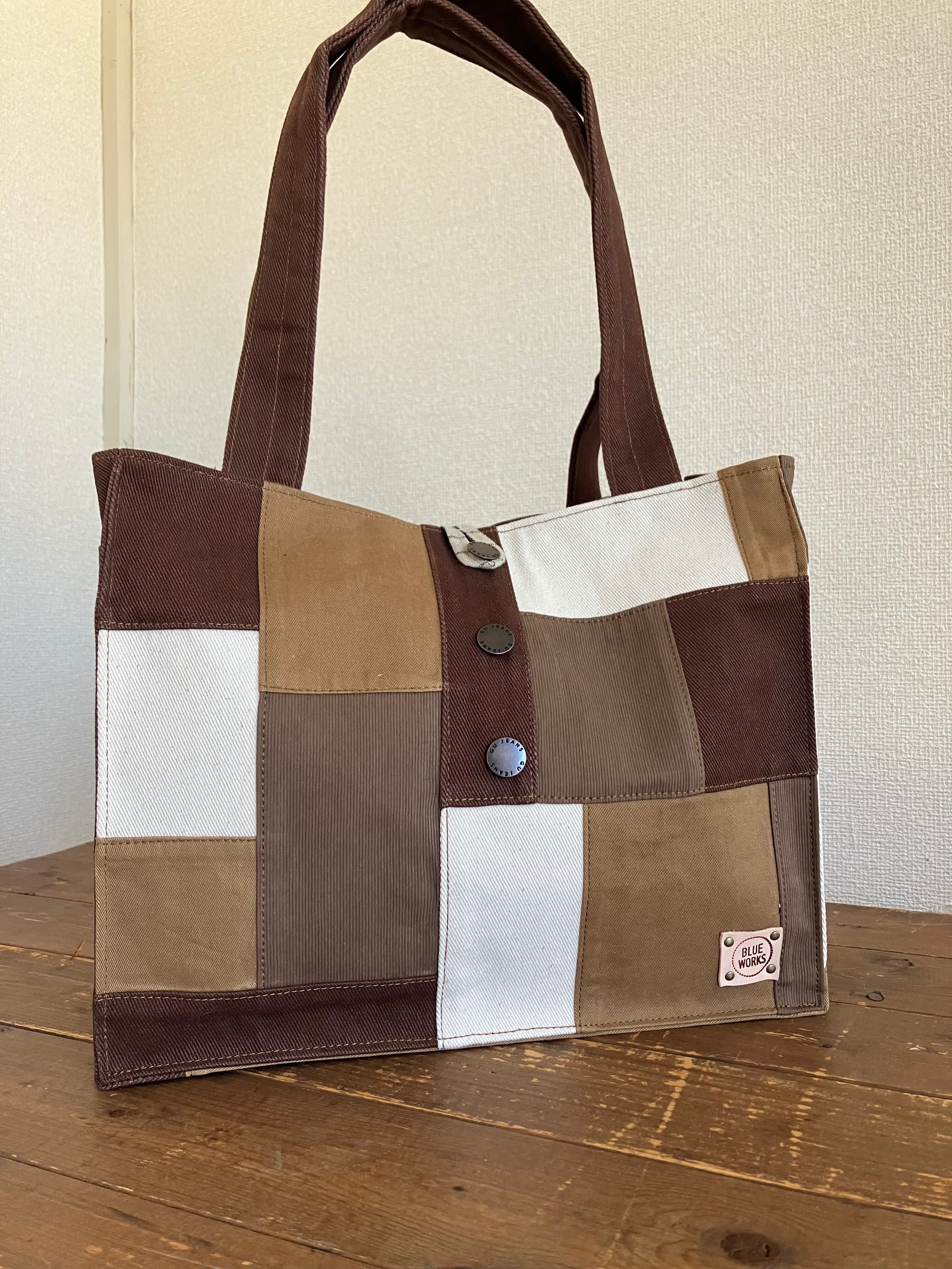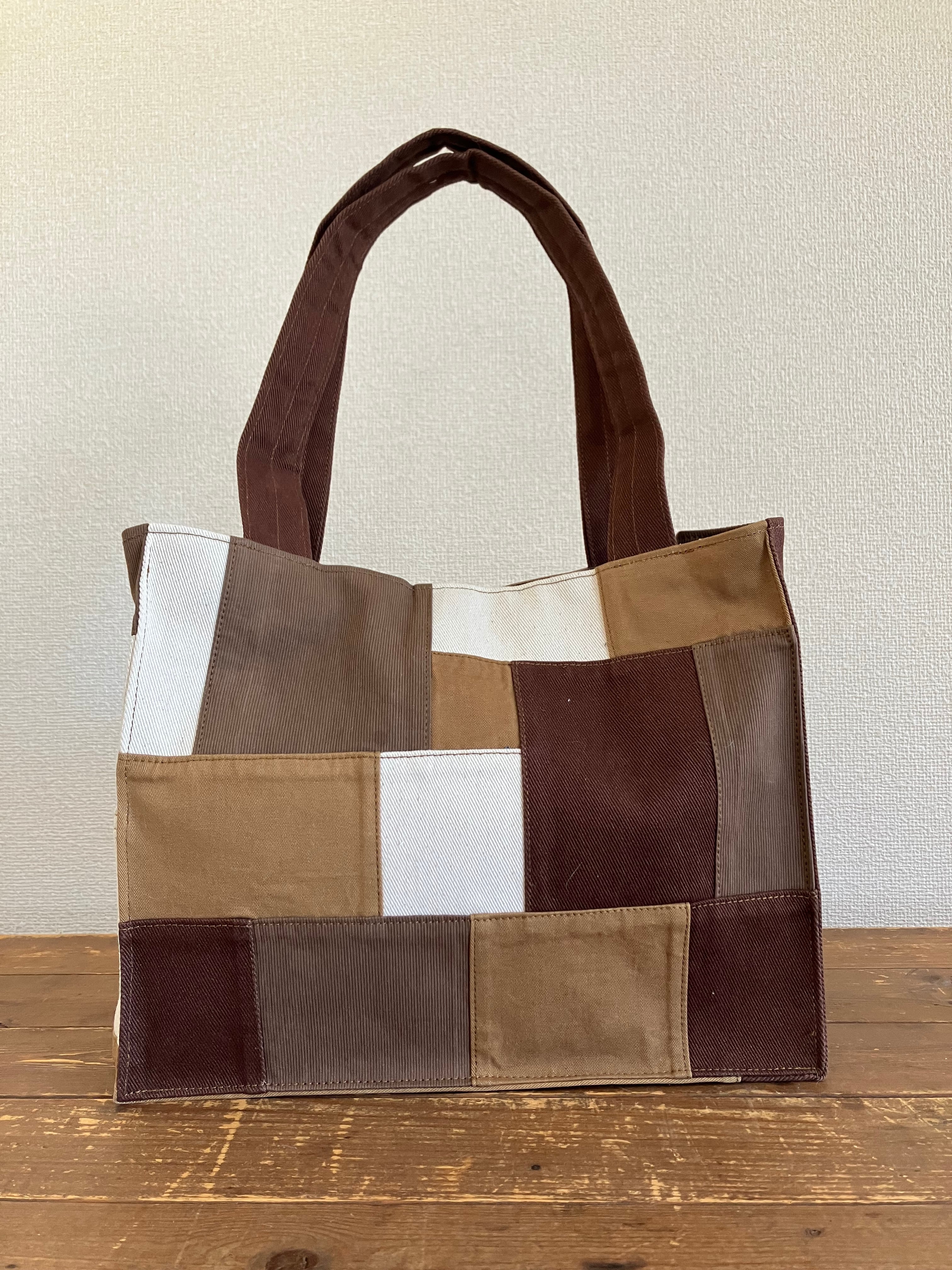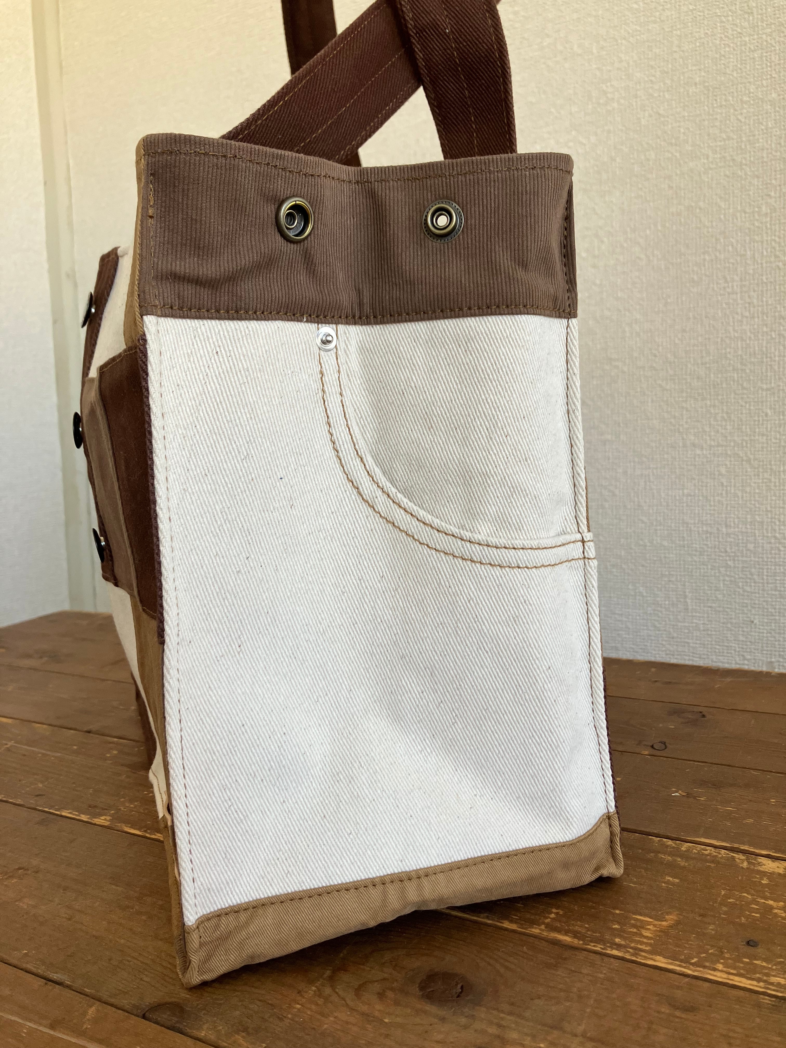 古着のデニムをパッチワークで繋ぎバッグに仕立てています。