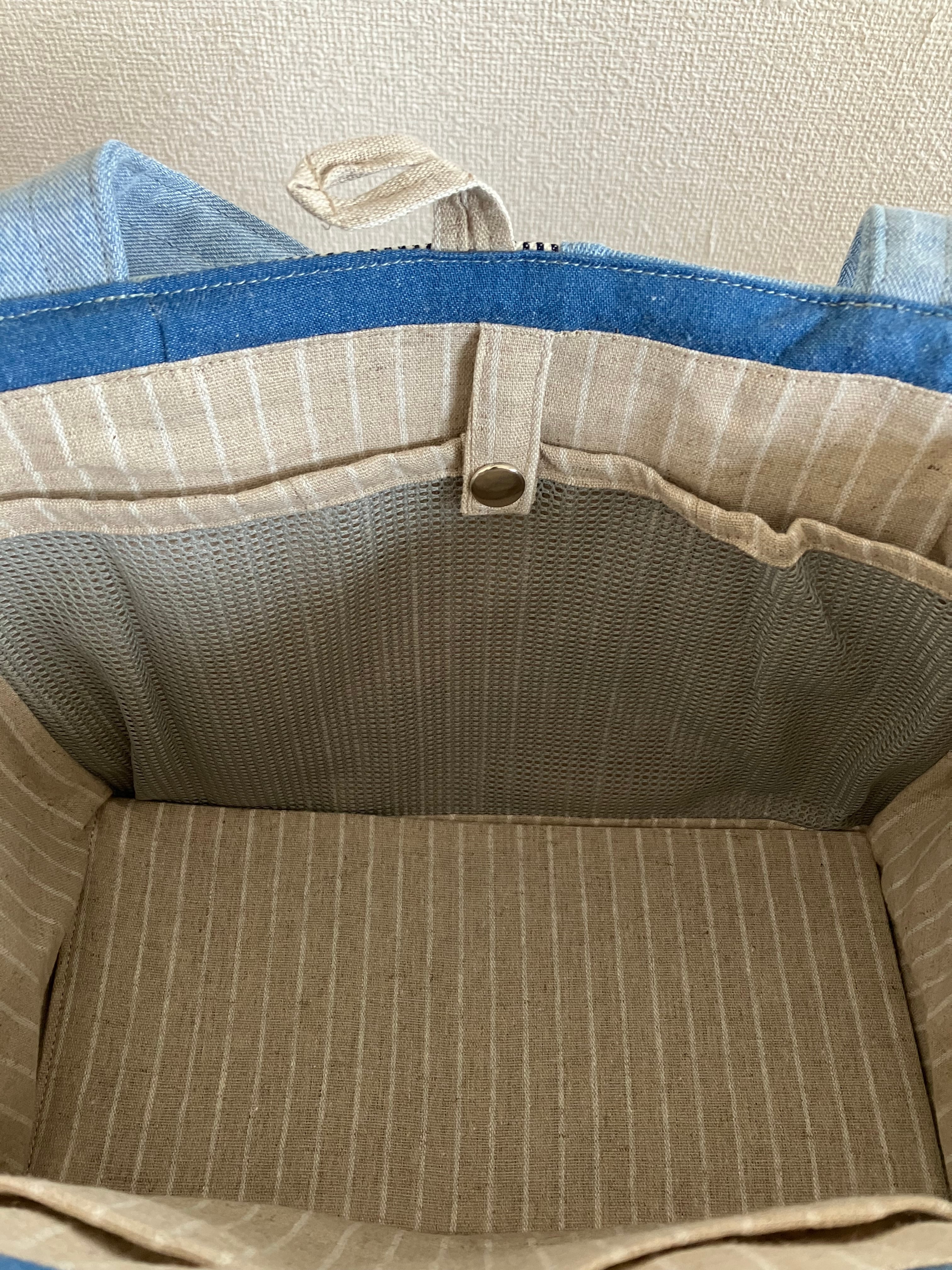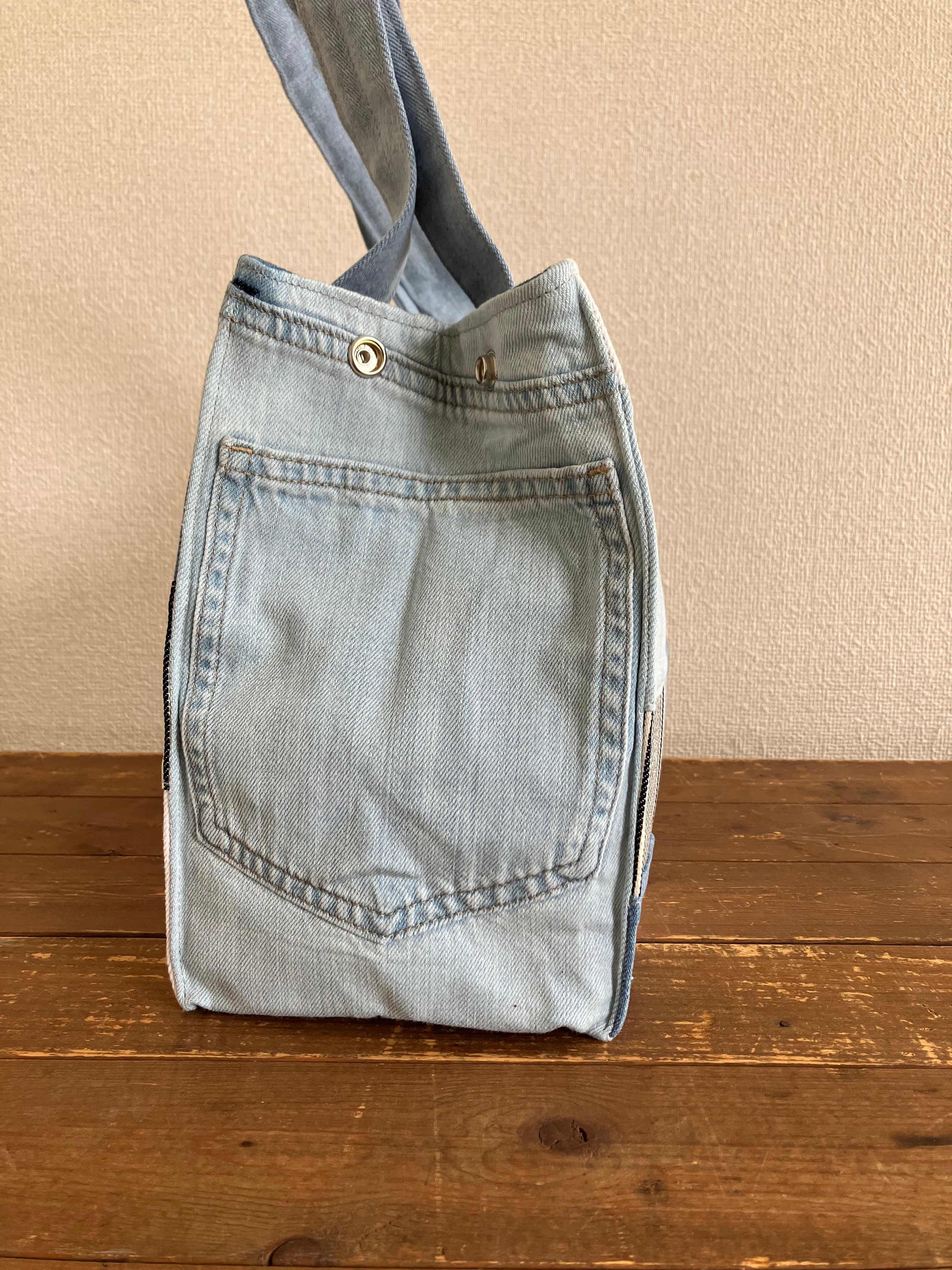 BLUEWORKSのトートバッグはサイドにジーンズのポケットが付いています。