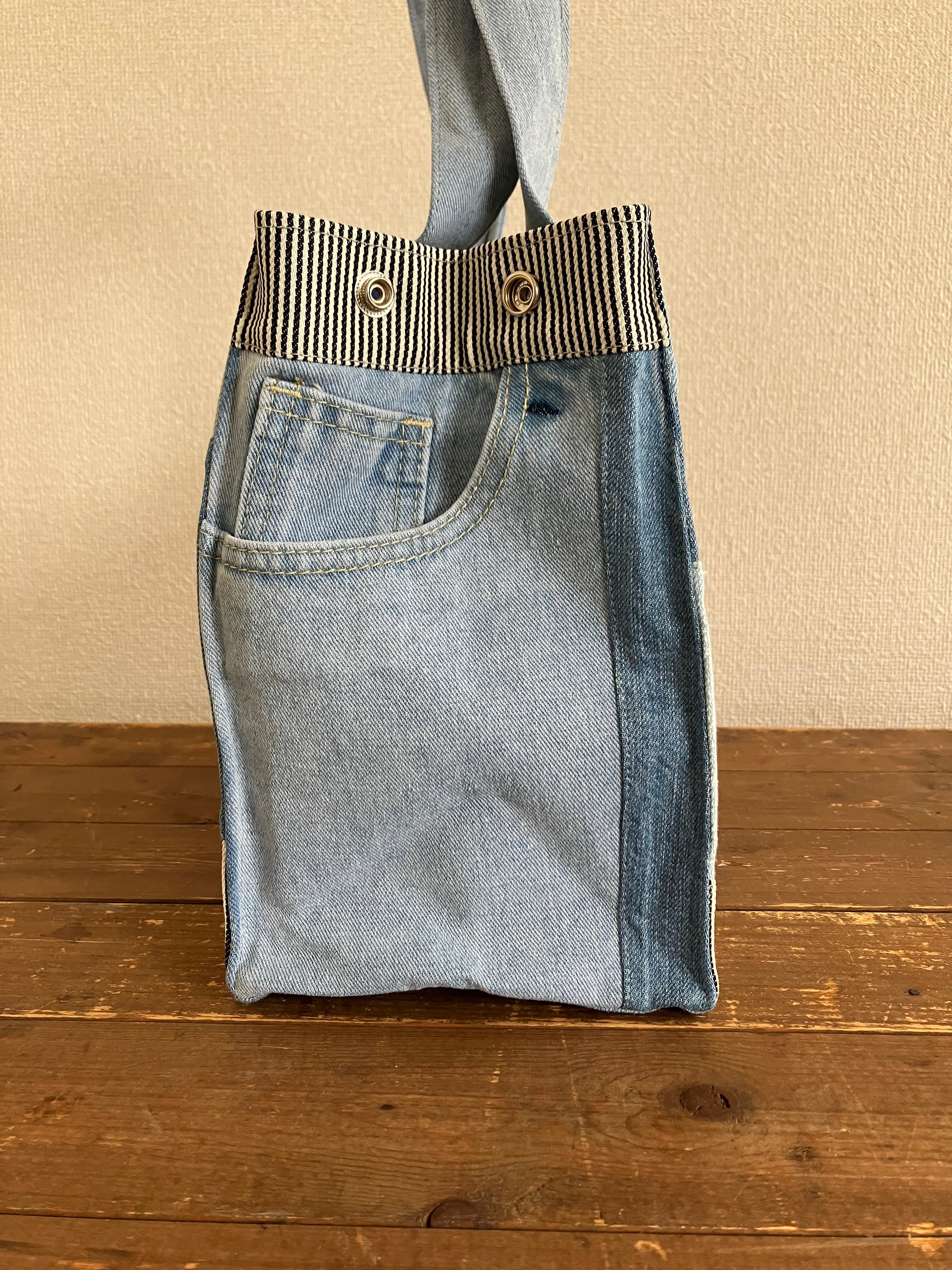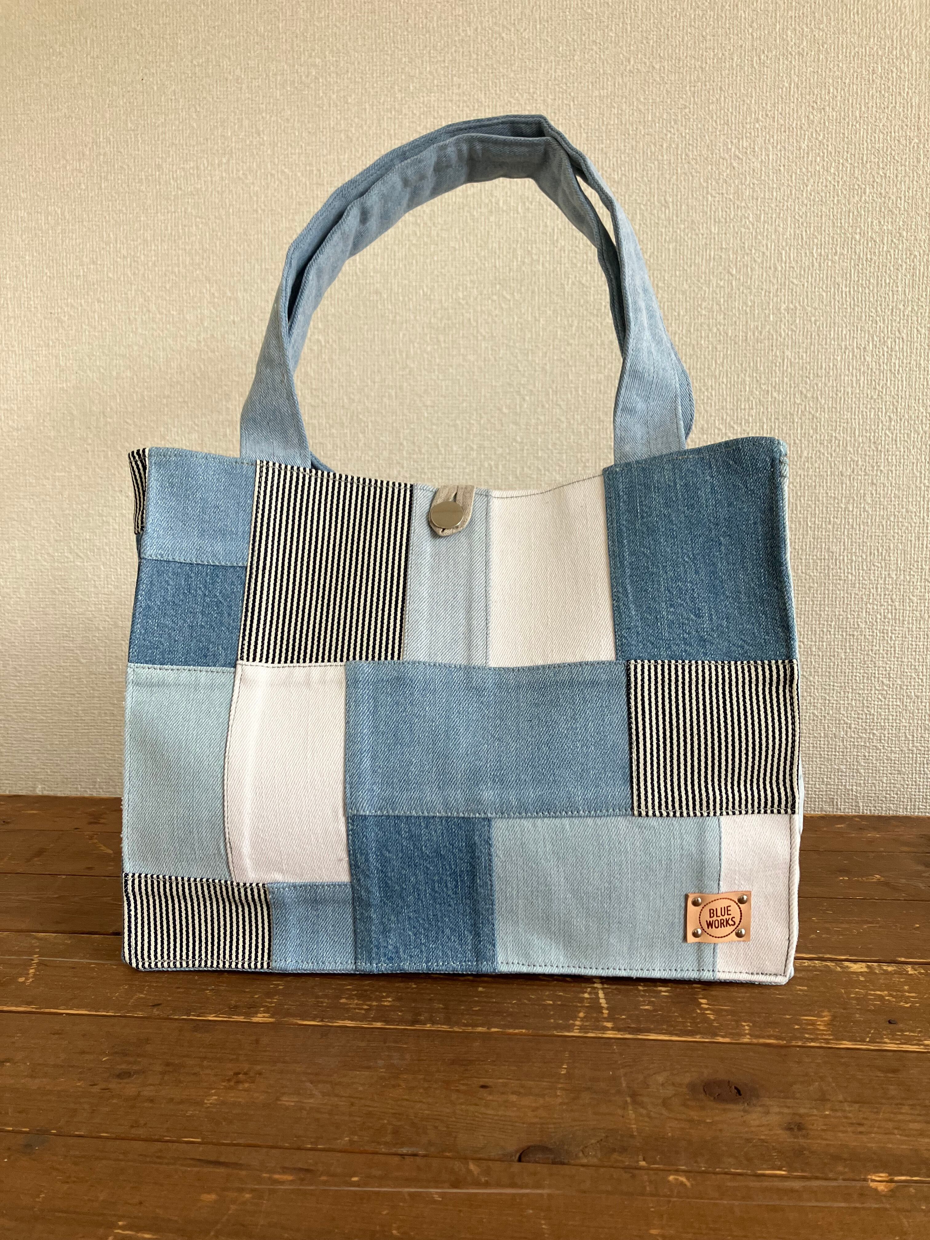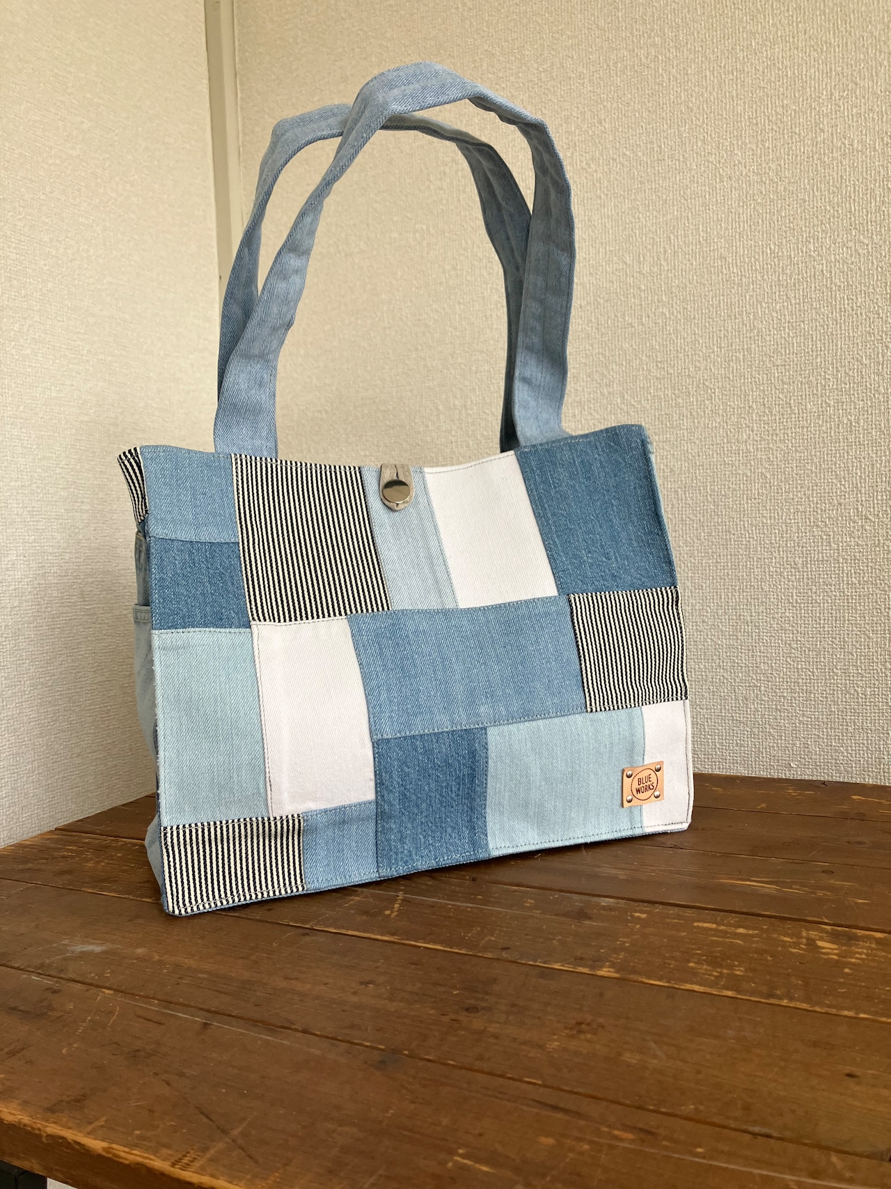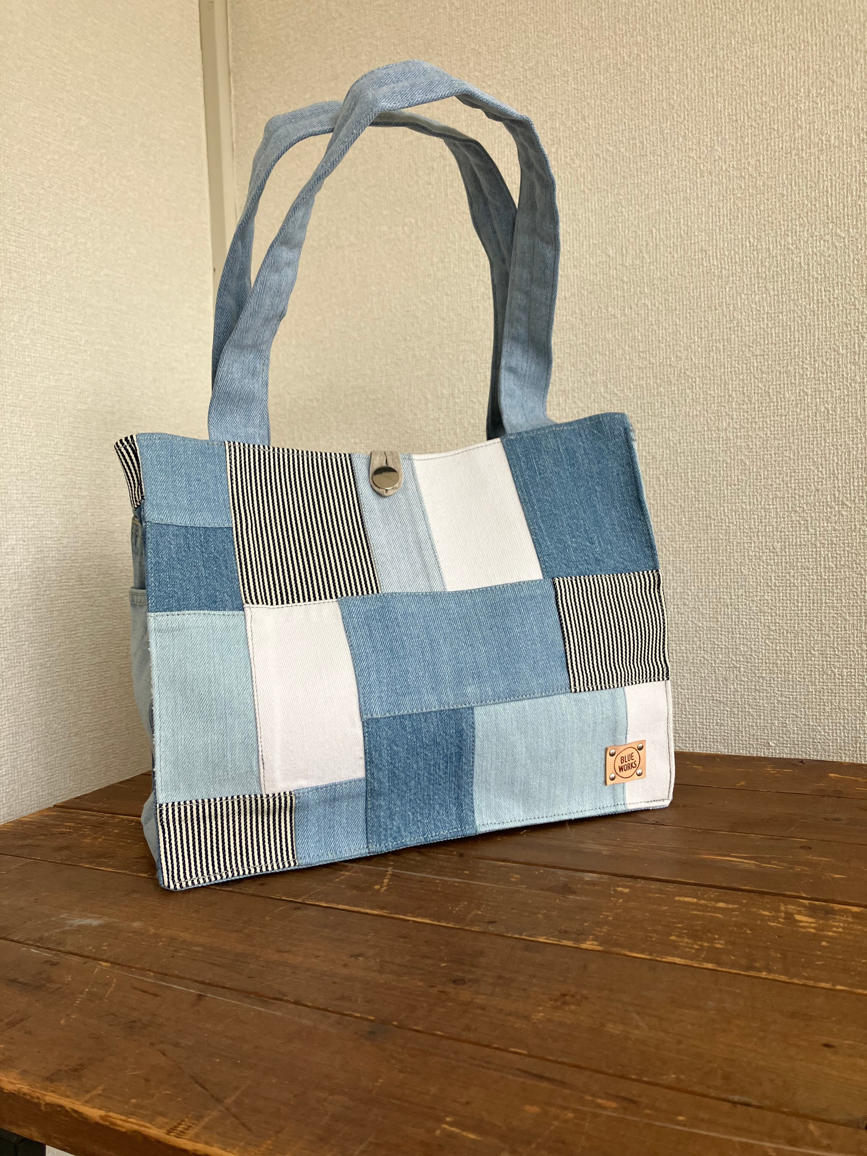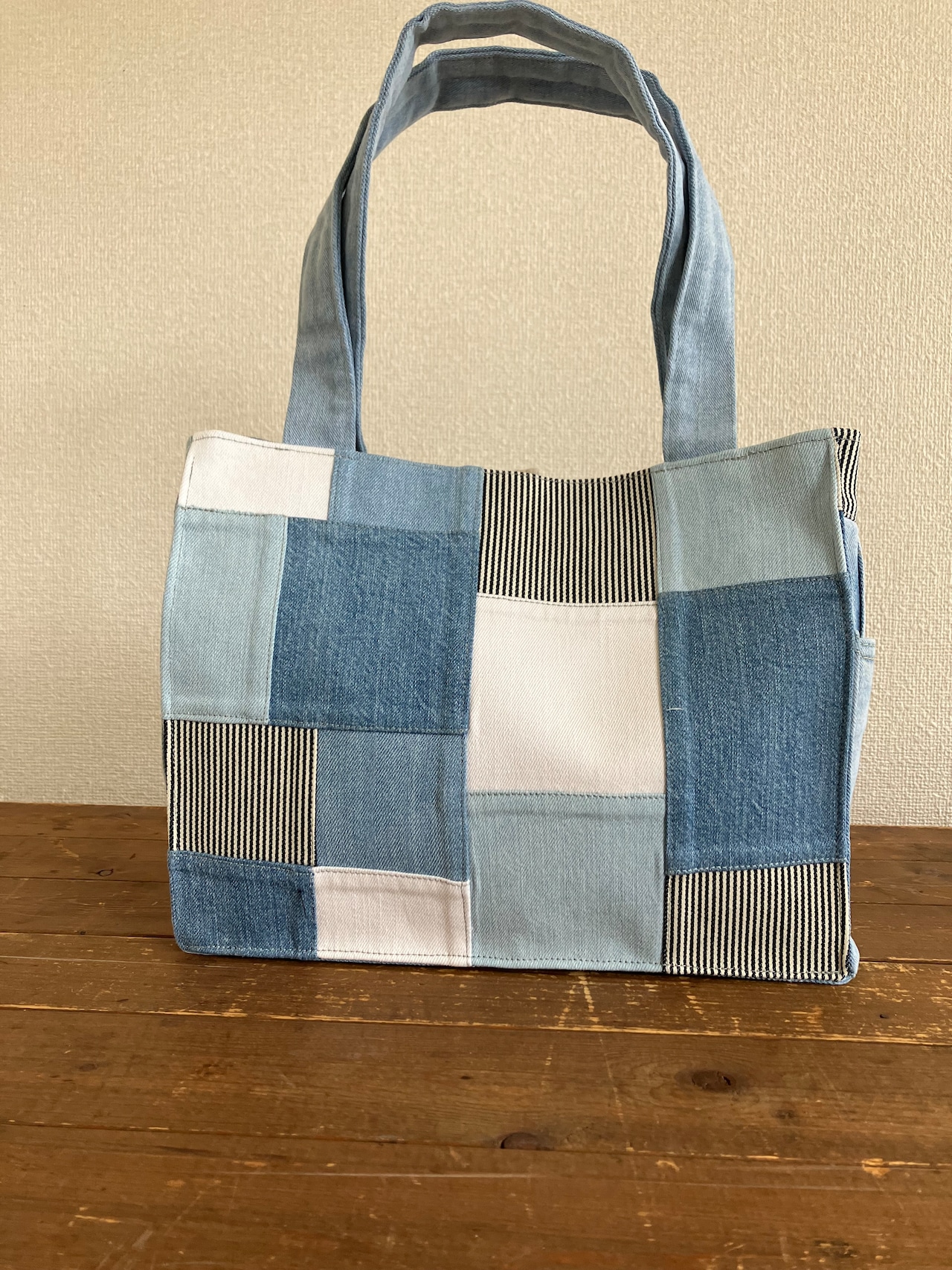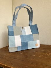 古着のデニムをパッチワークで繋ぎバッグに仕立てています。