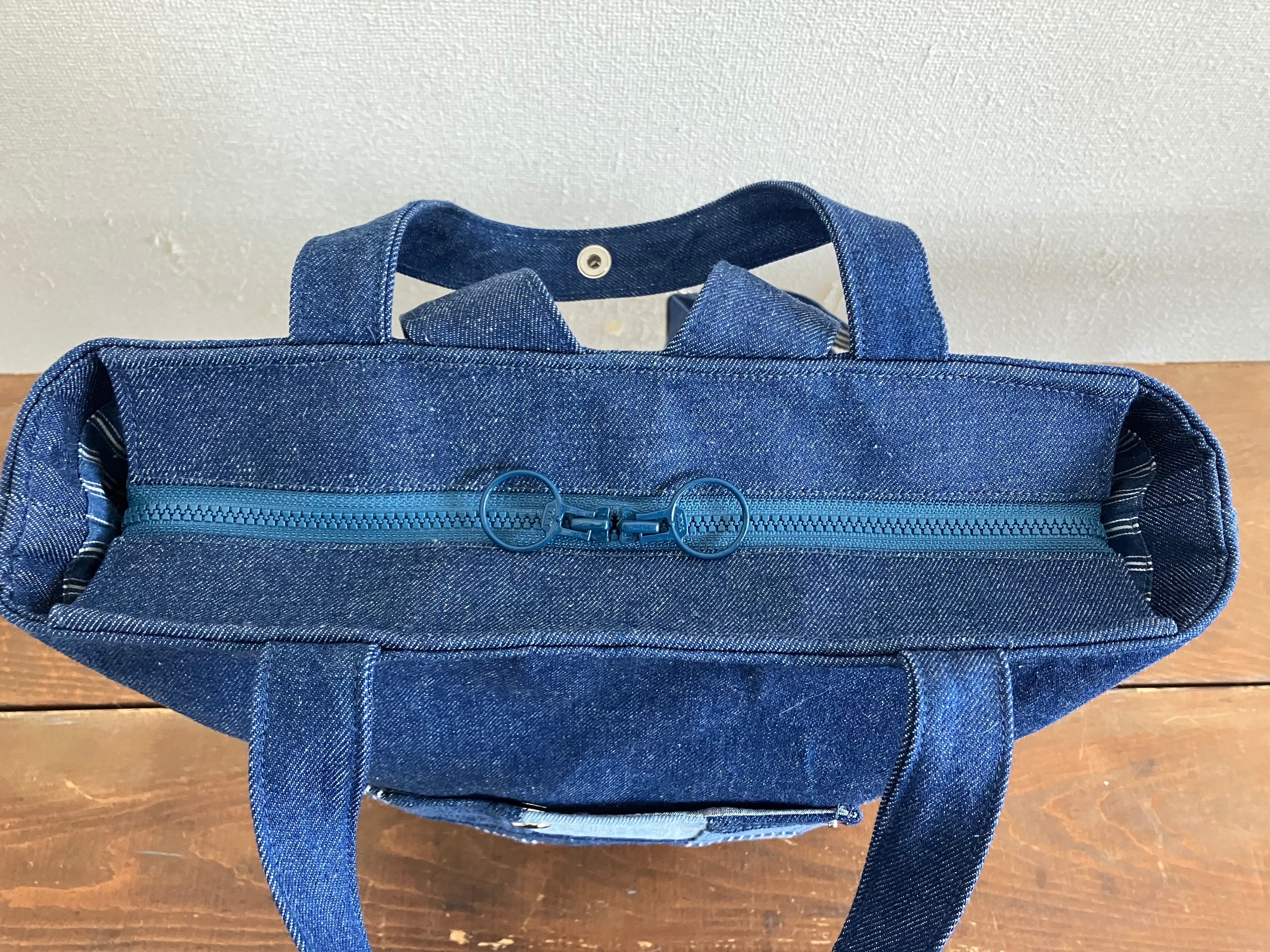 ・本体はデニム100%で、裏地はタンガリー生地を使用。製造国は日本です。