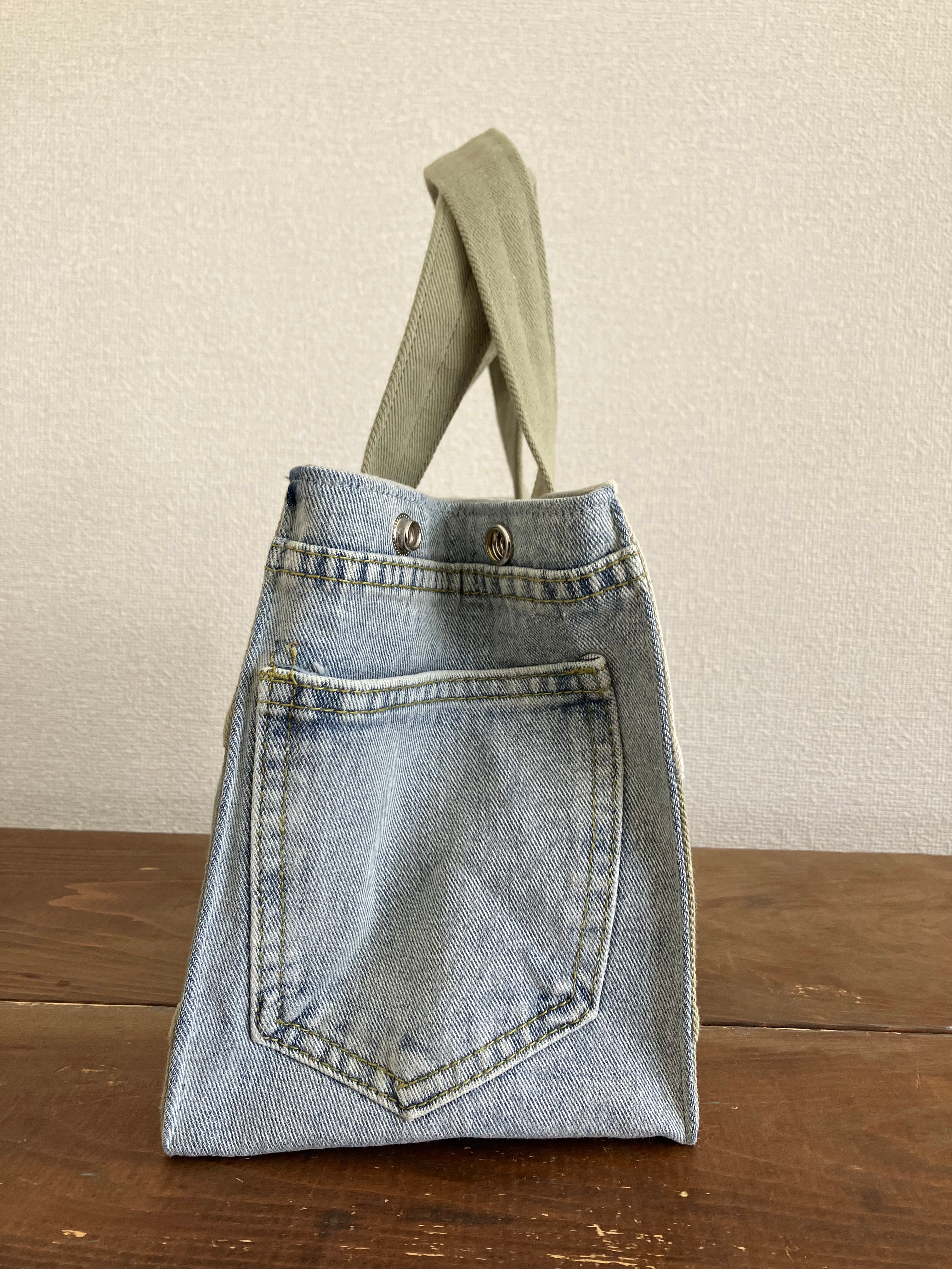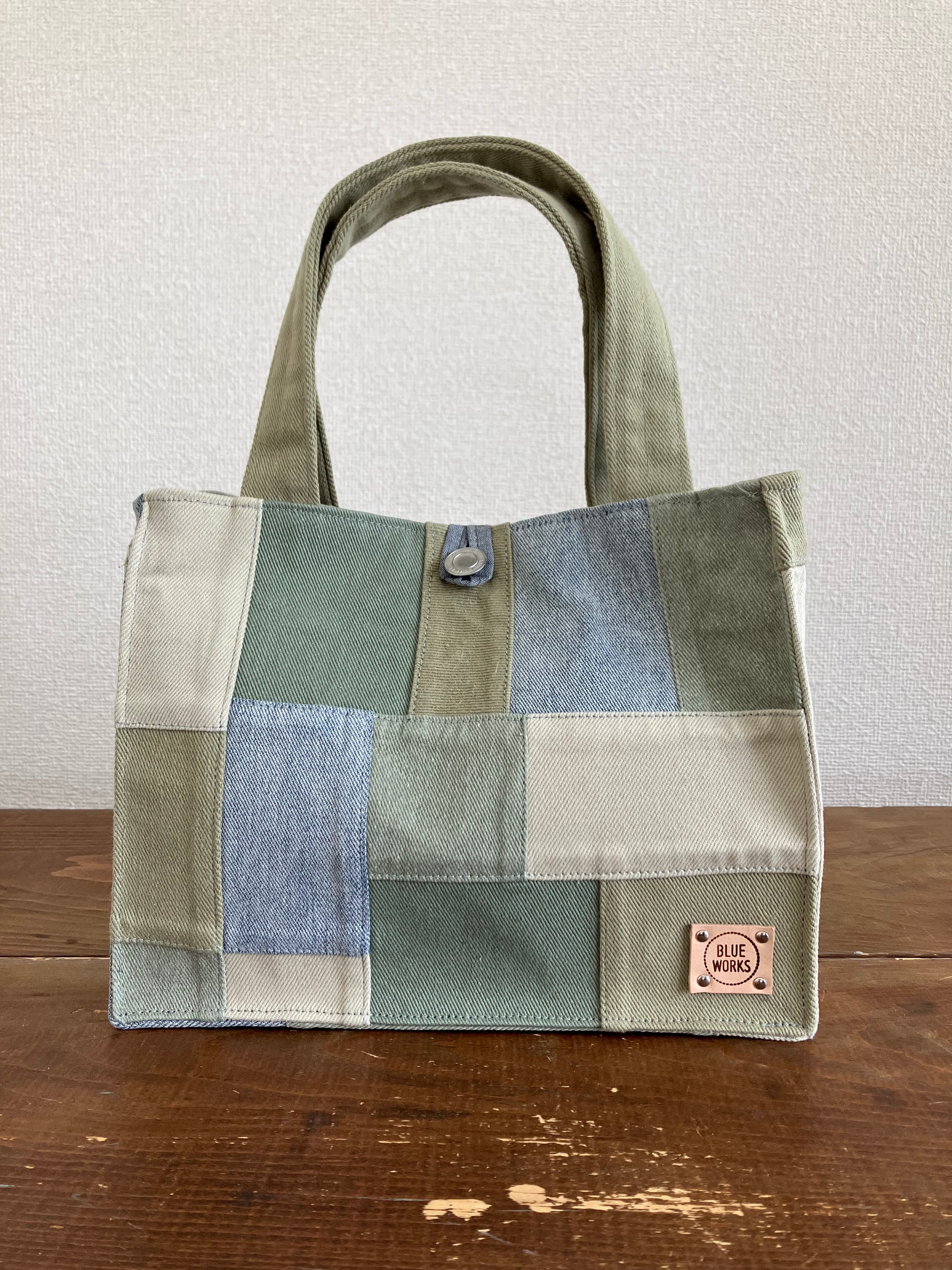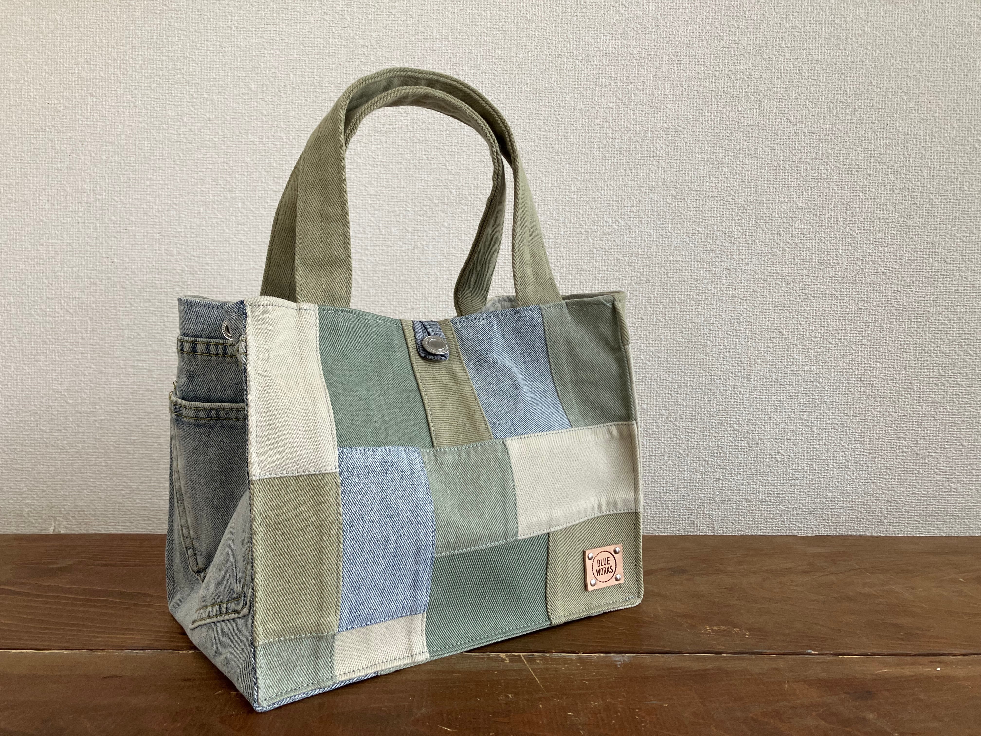 古着のデニムをパッチワークで繋ぎバッグに仕立てています。