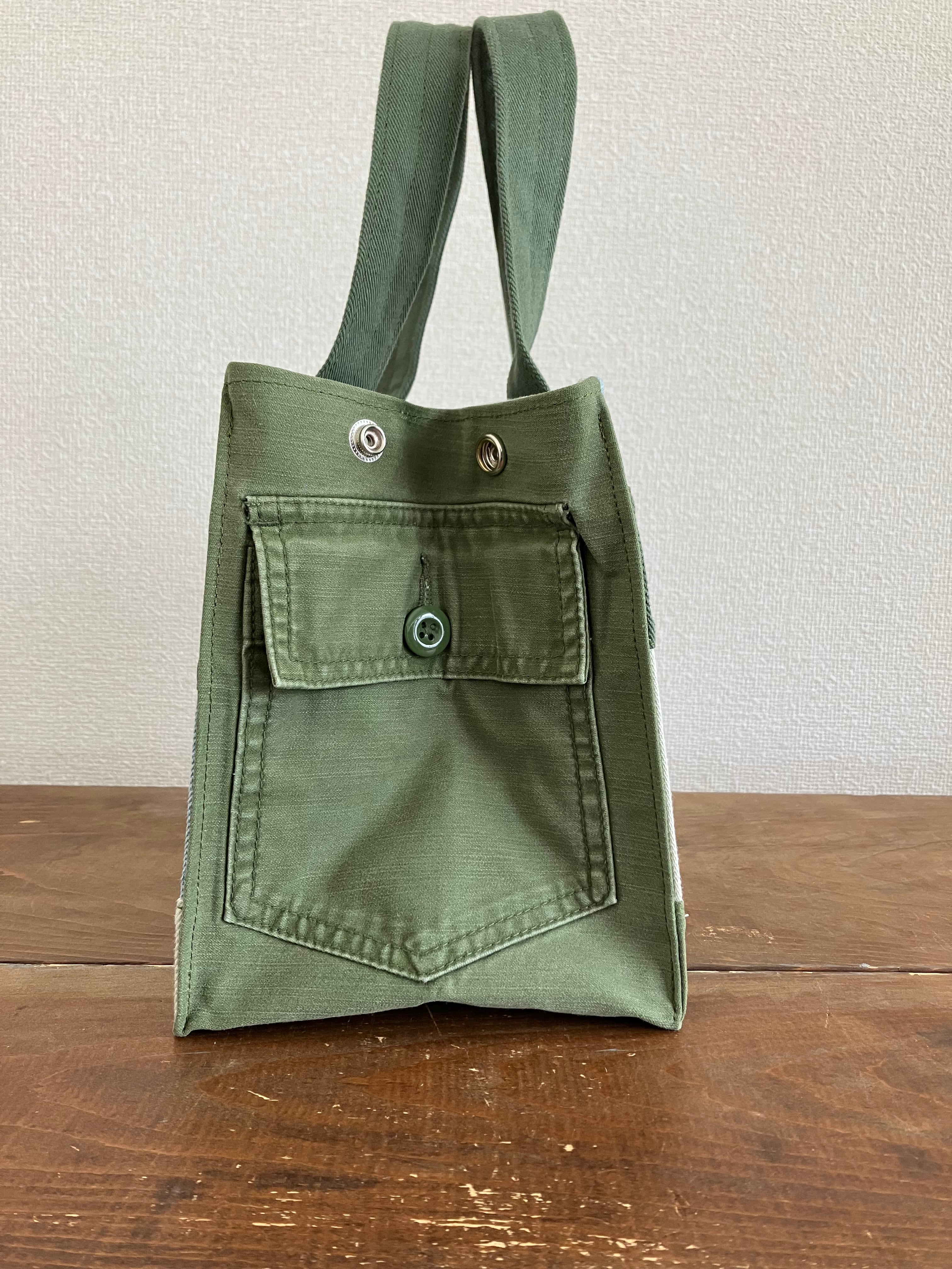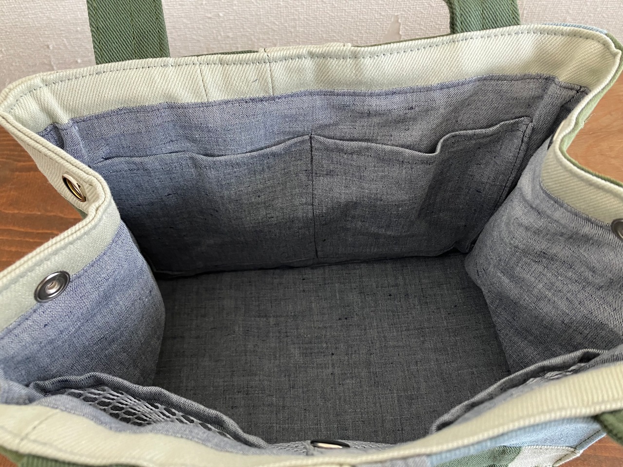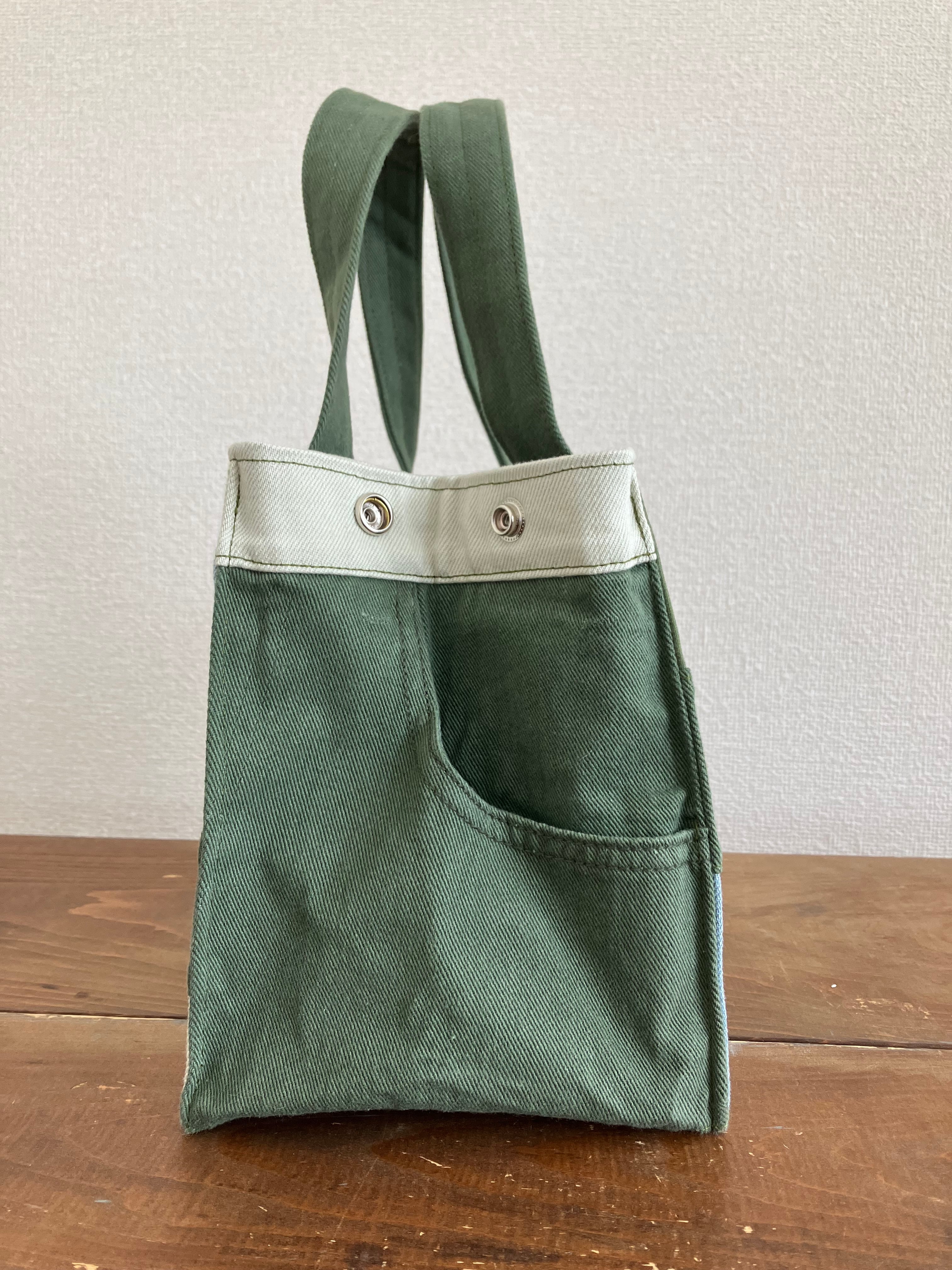 BLUEWORKSのトートバッグはサイドにジーンズのポケットが付いています。