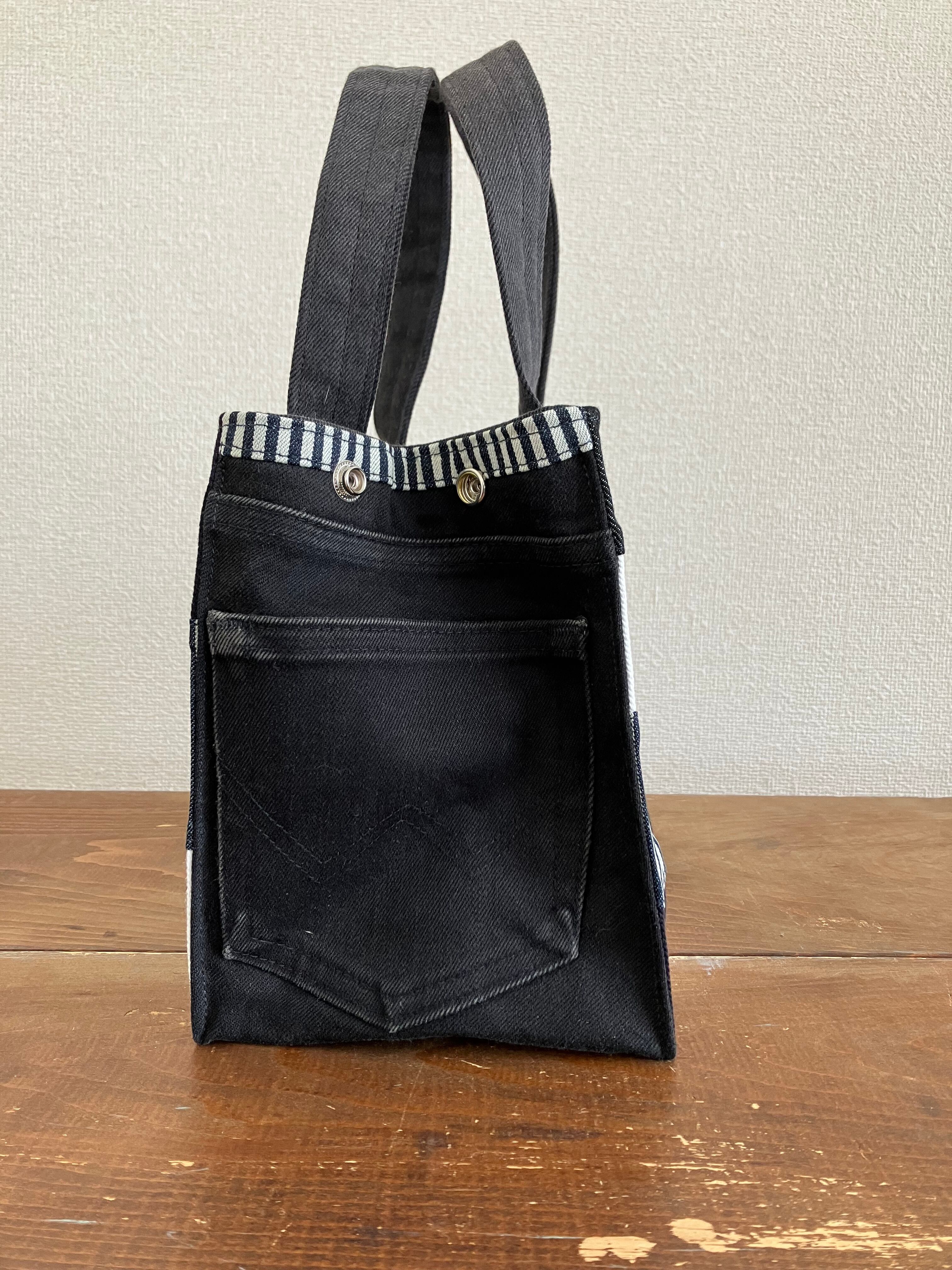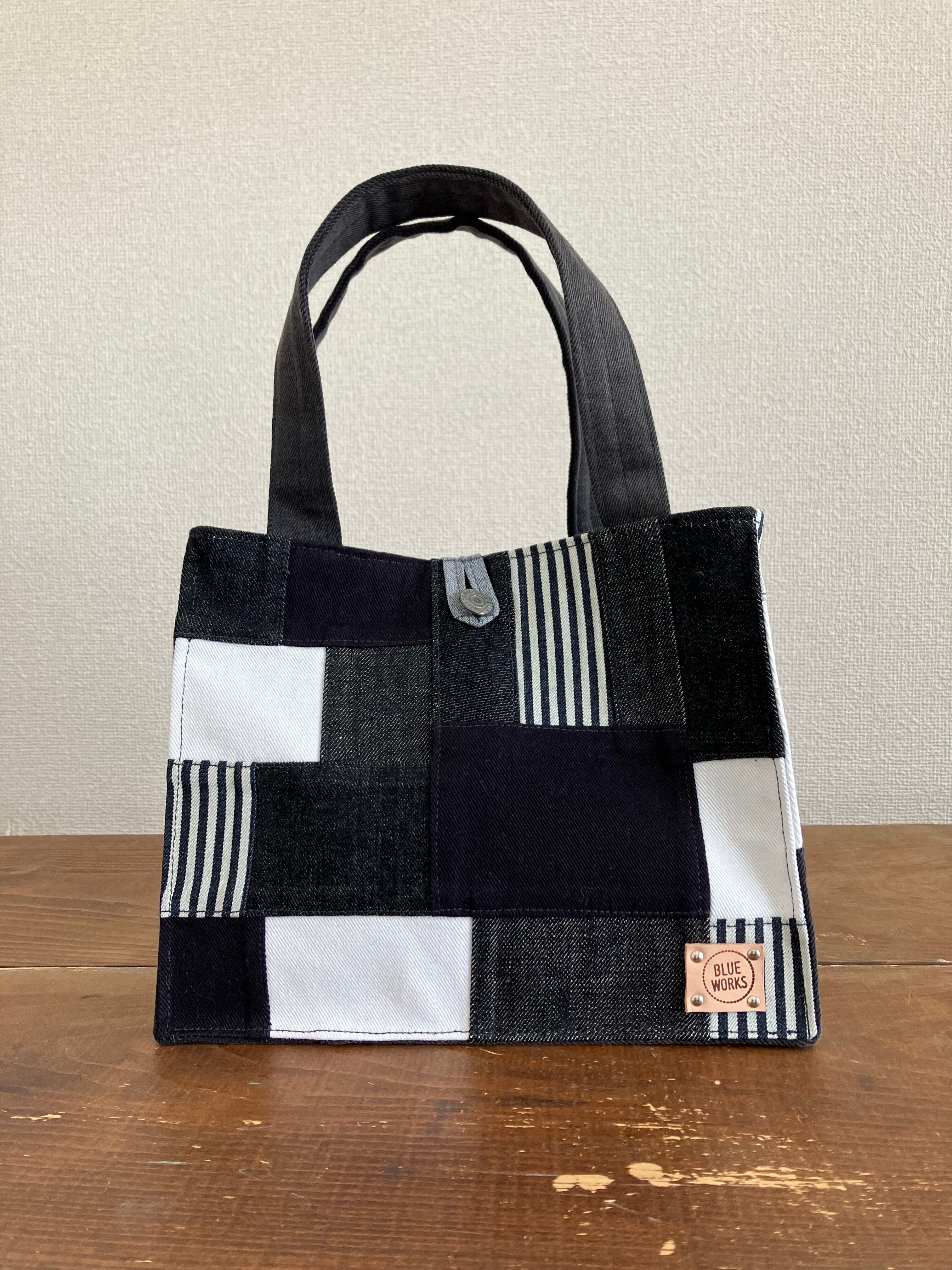 古着のデニムをパッチワークで繋ぎバッグに仕立てています。