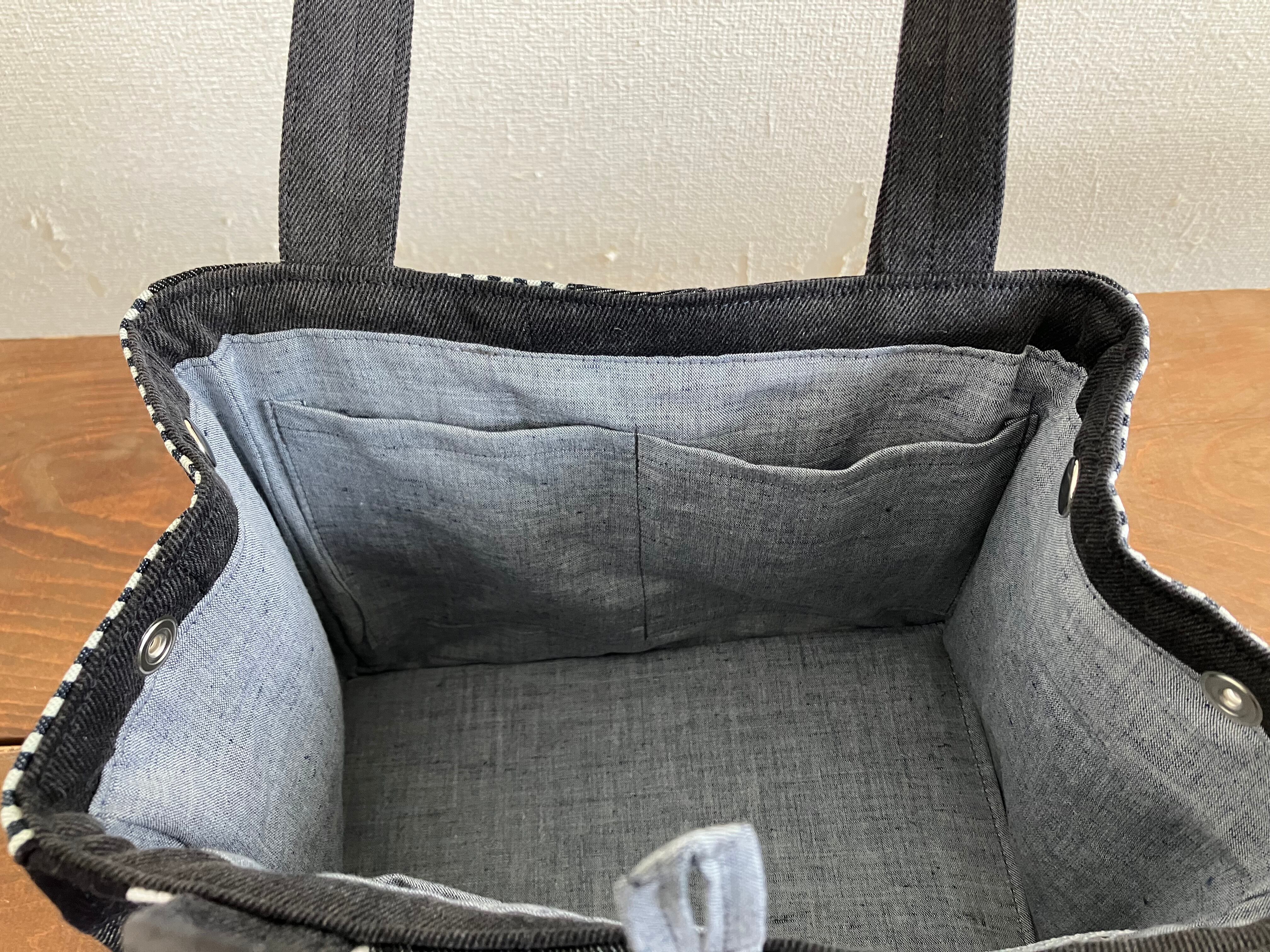 BLUEWORKSのトートバッグはサイドにジーンズのポケットが付いています。