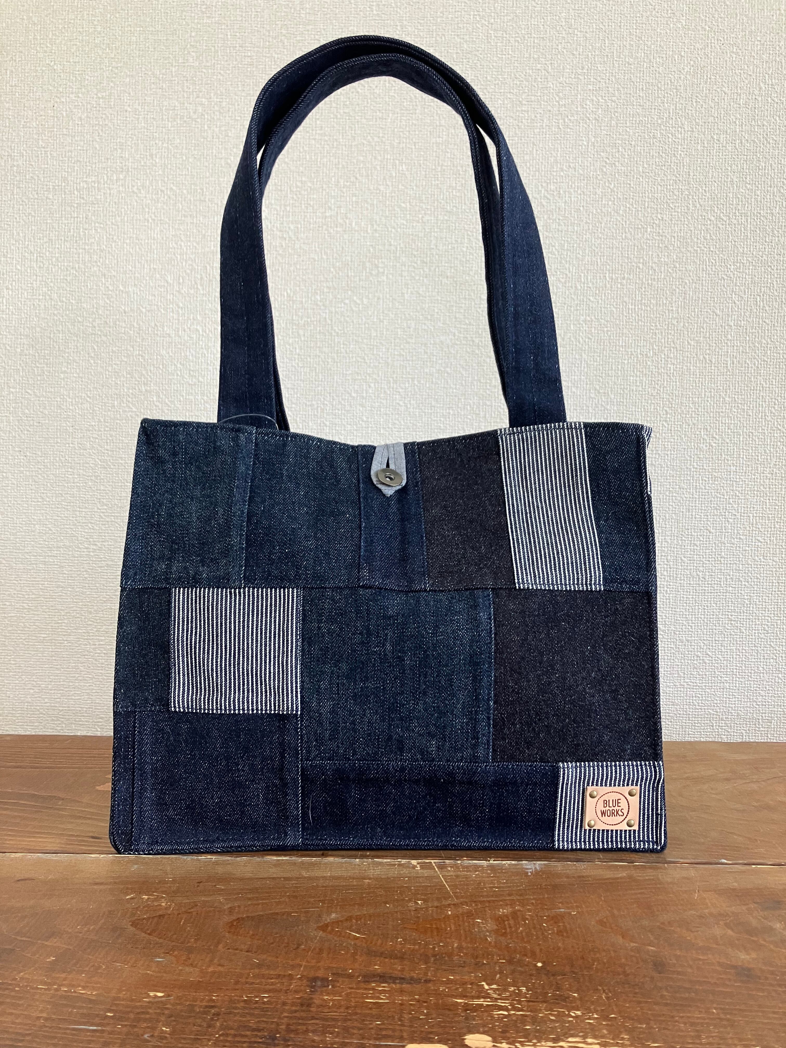 古着のデニムをパッチワークで繋ぎバッグに仕立てています。