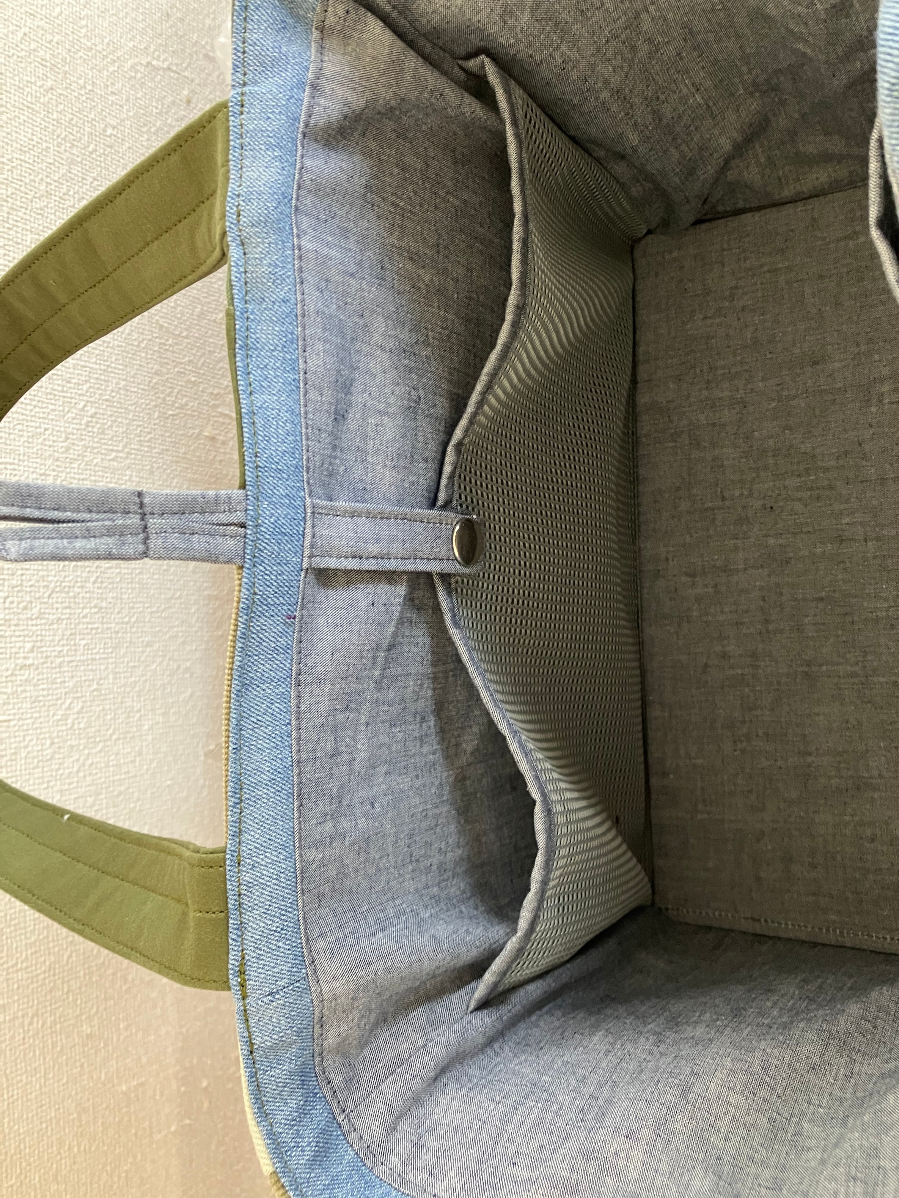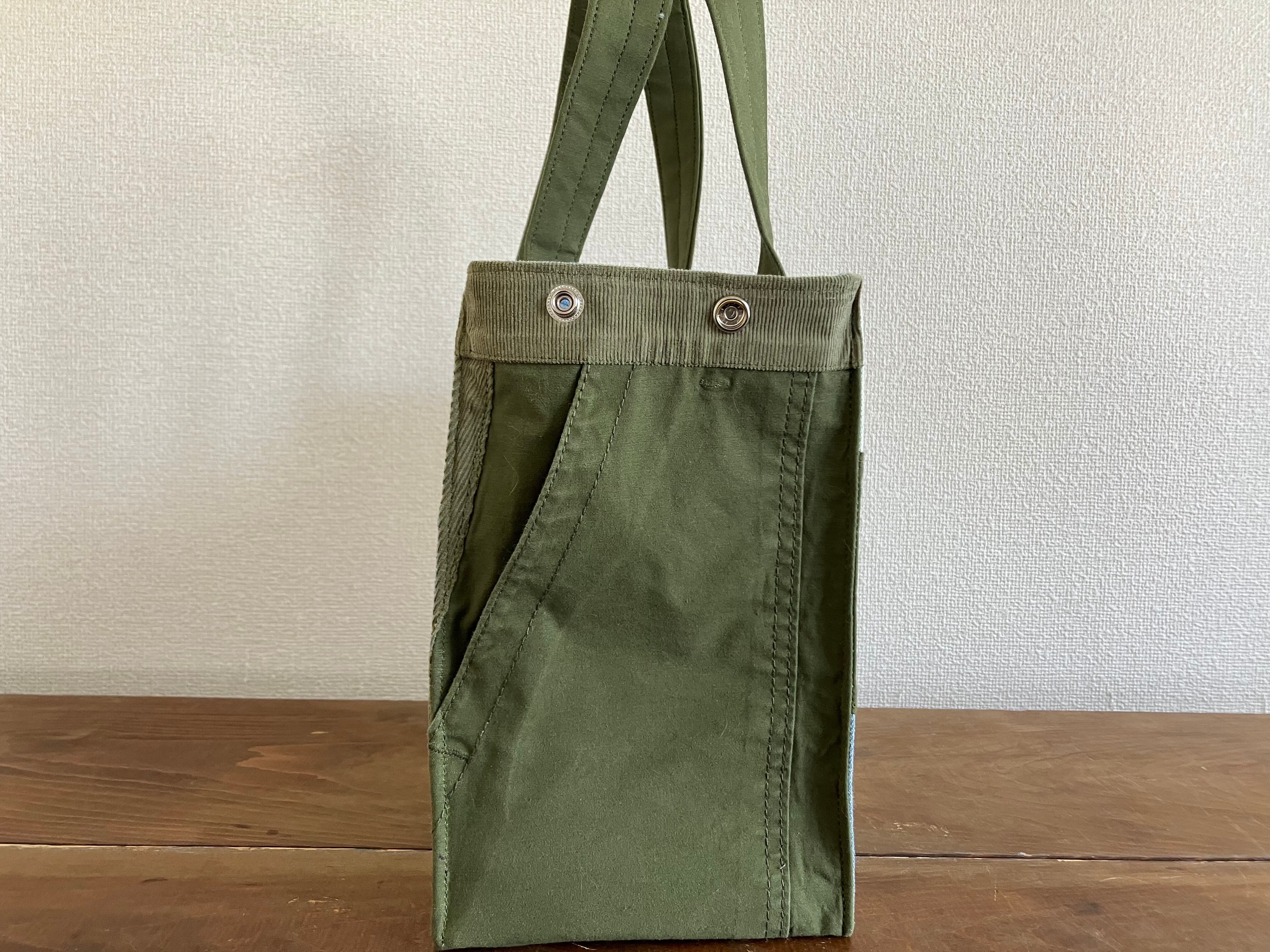 トートバッグ(M)グリーン×カーキ×ライトブルー
