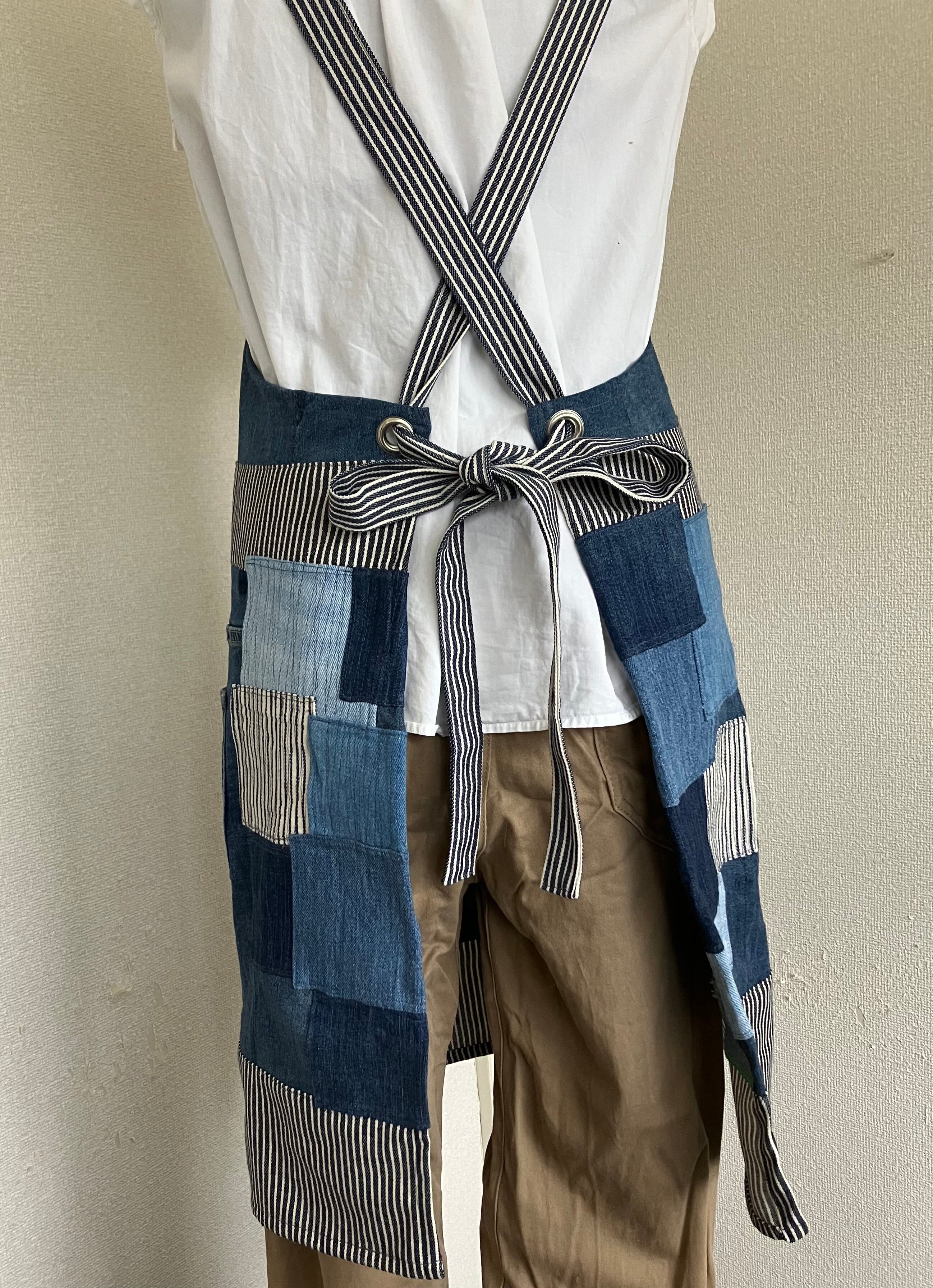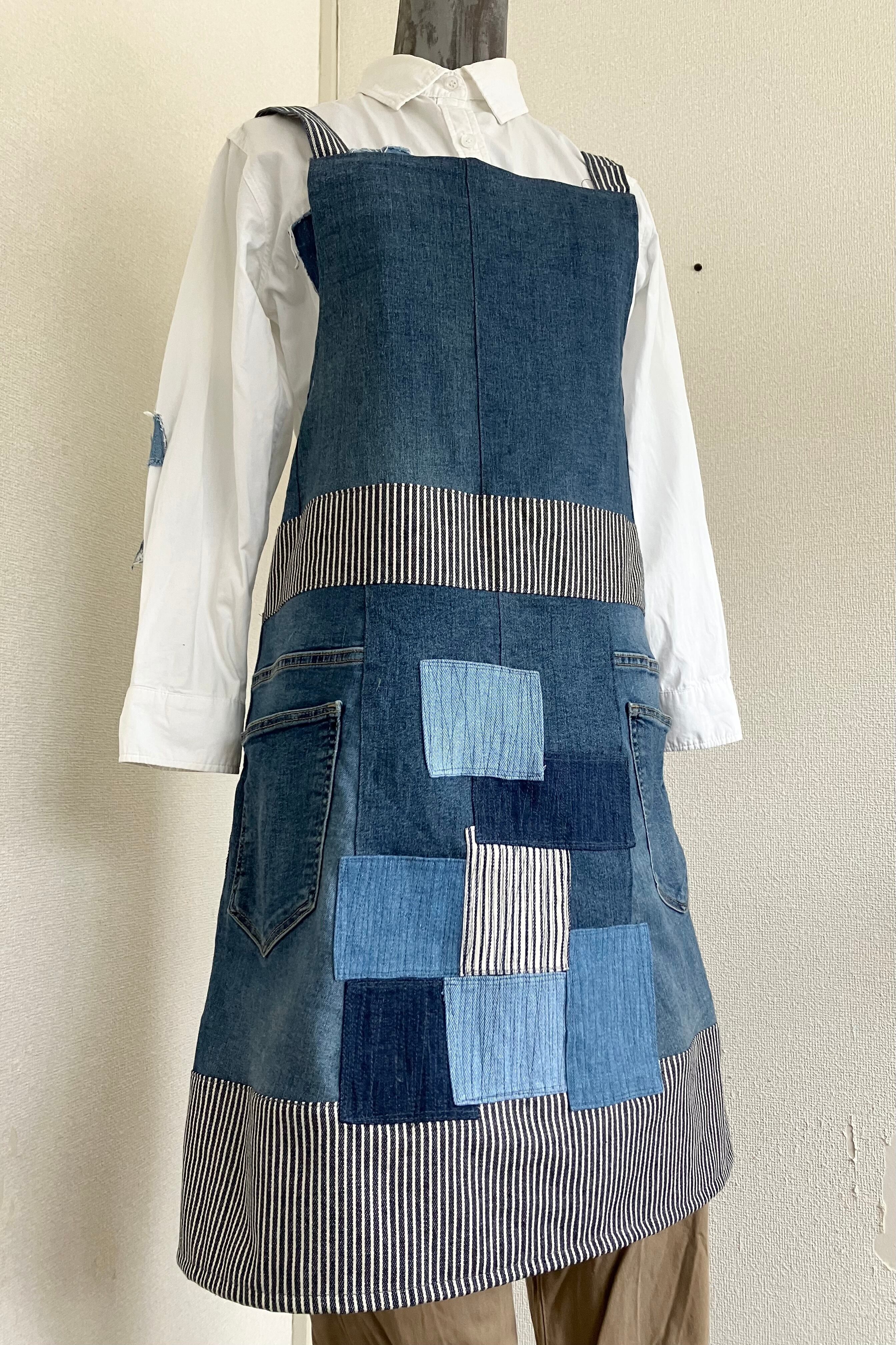 ダメージデニムで穴が空いている部分が多かったものをパッチワークで