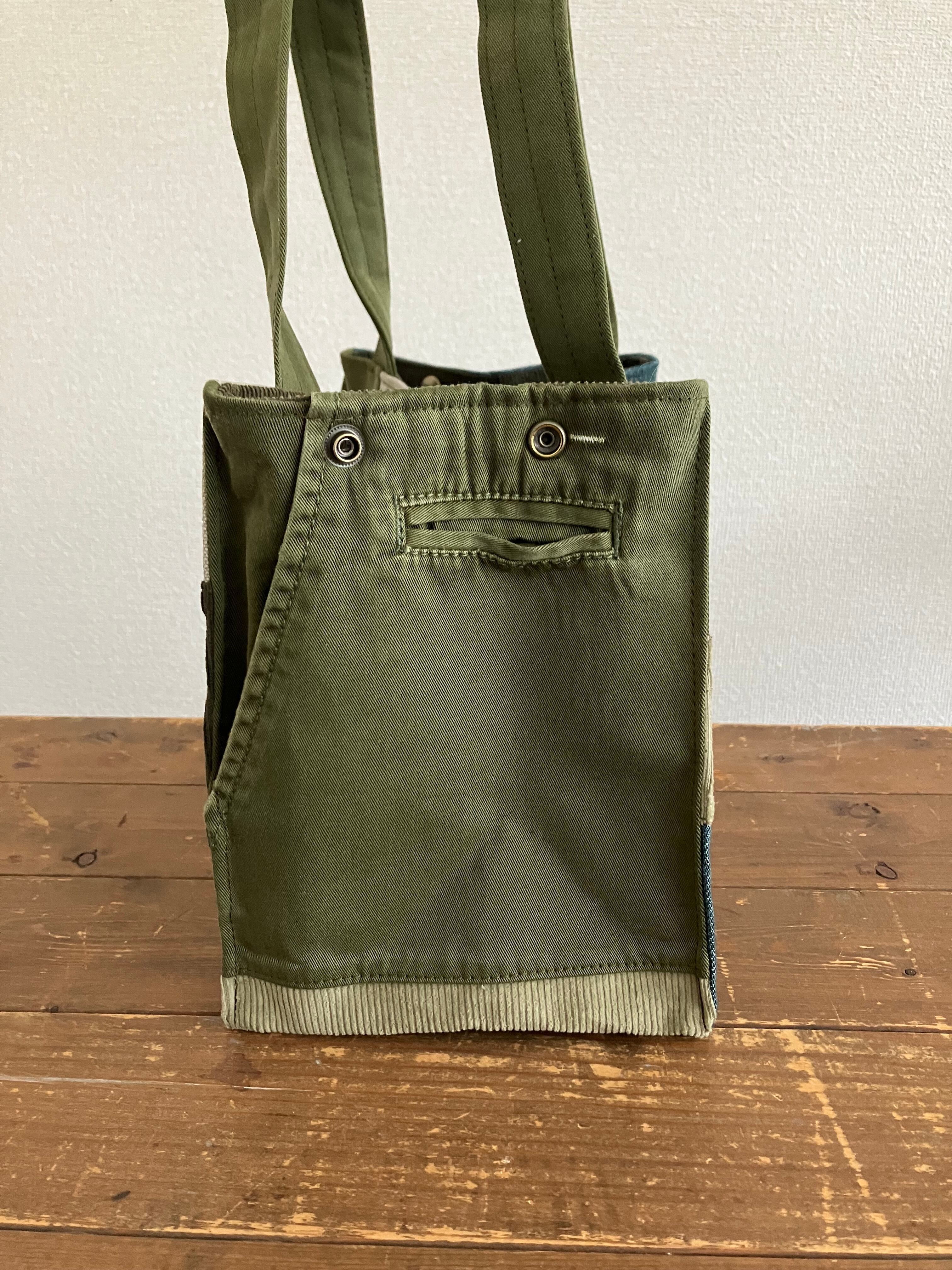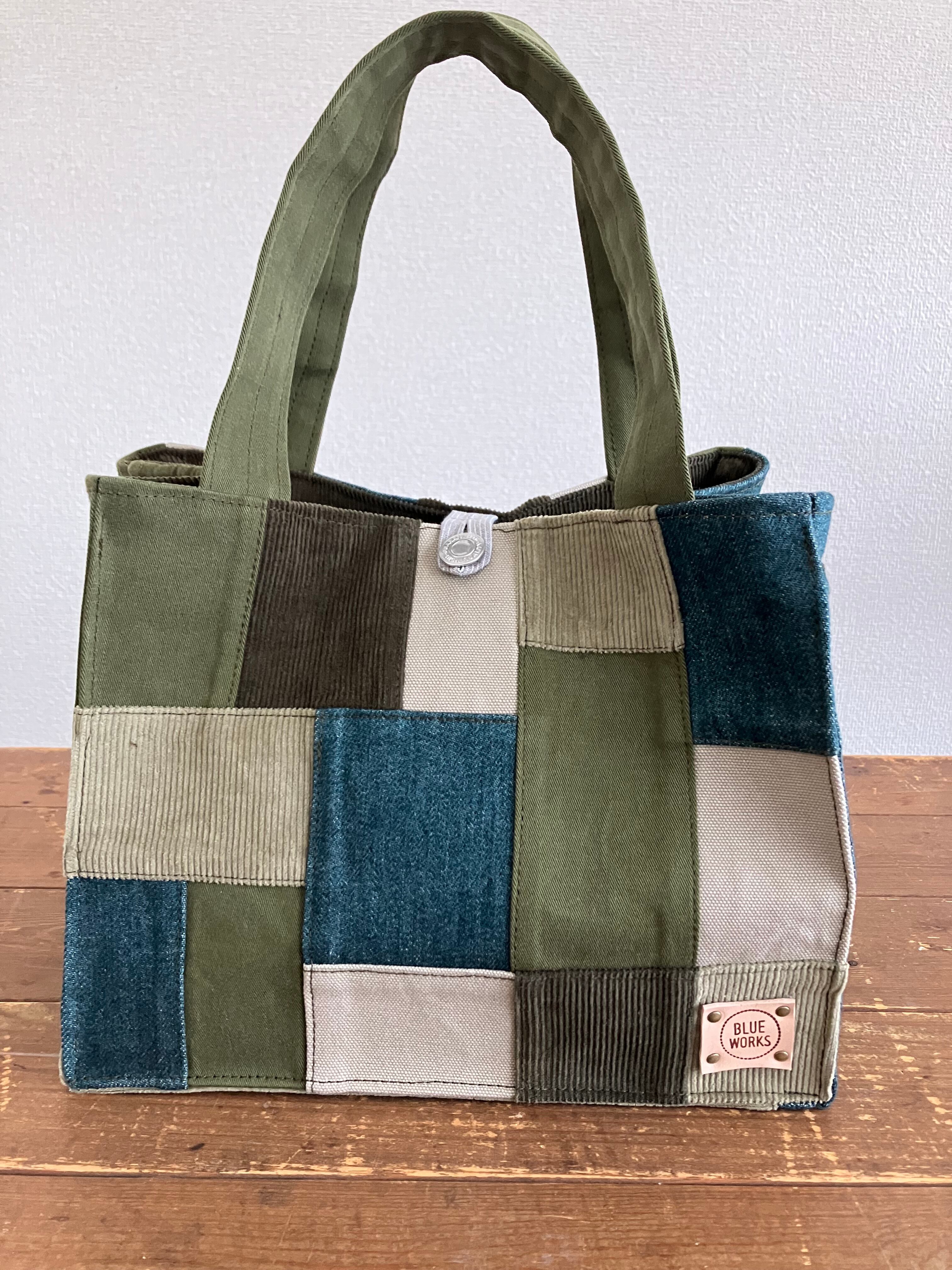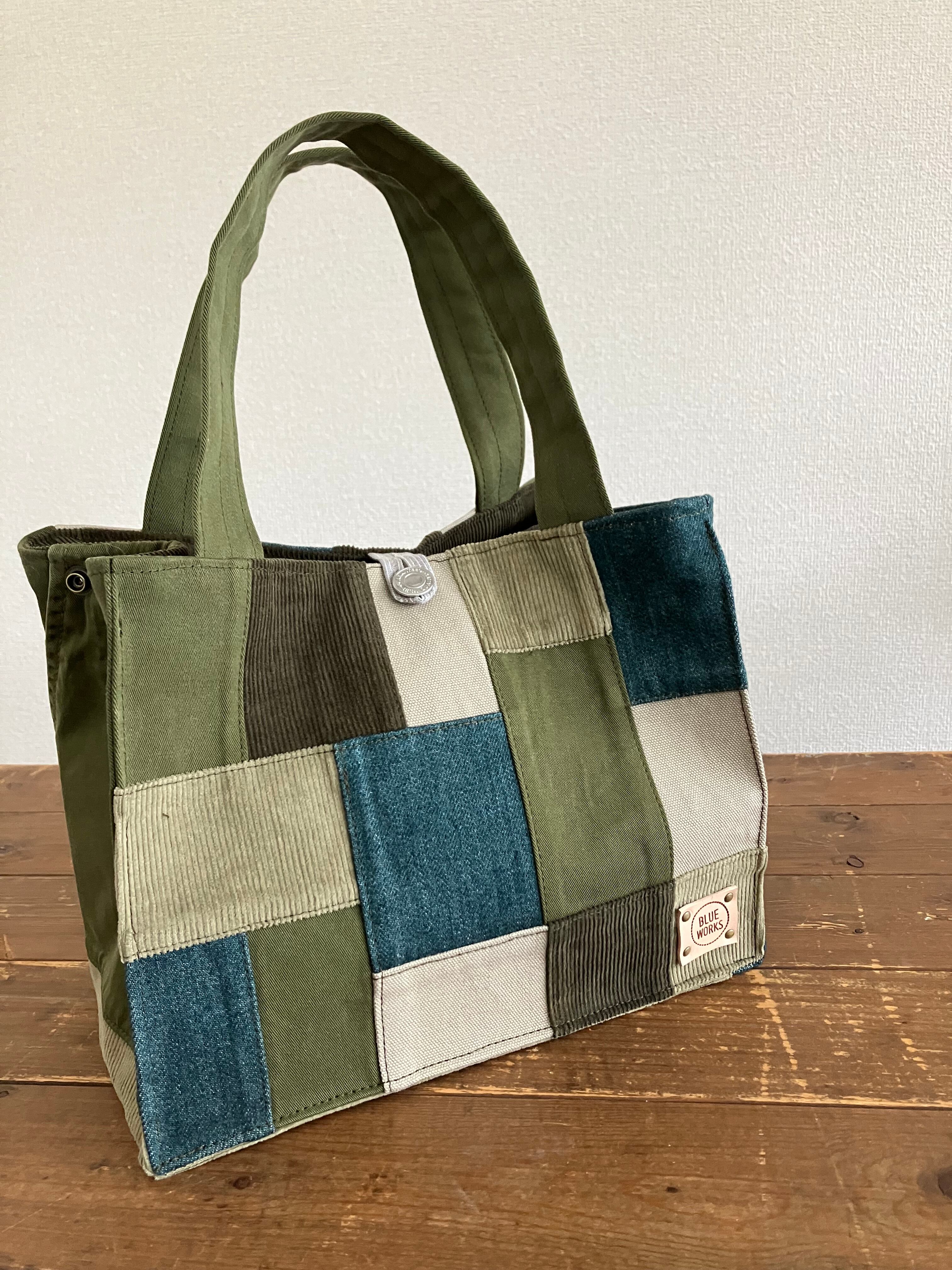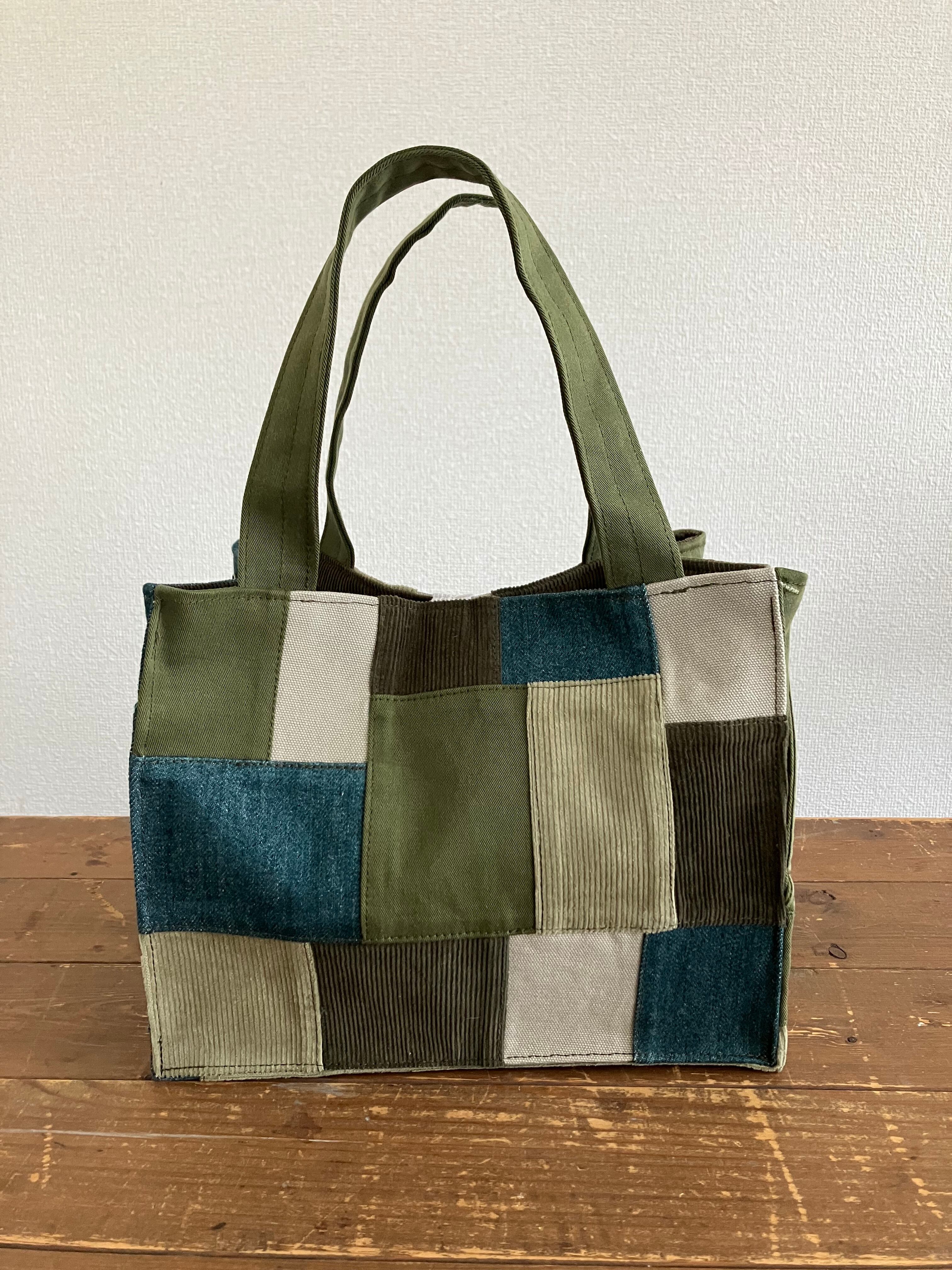 アースカラーのグリーントートバッグ(S)