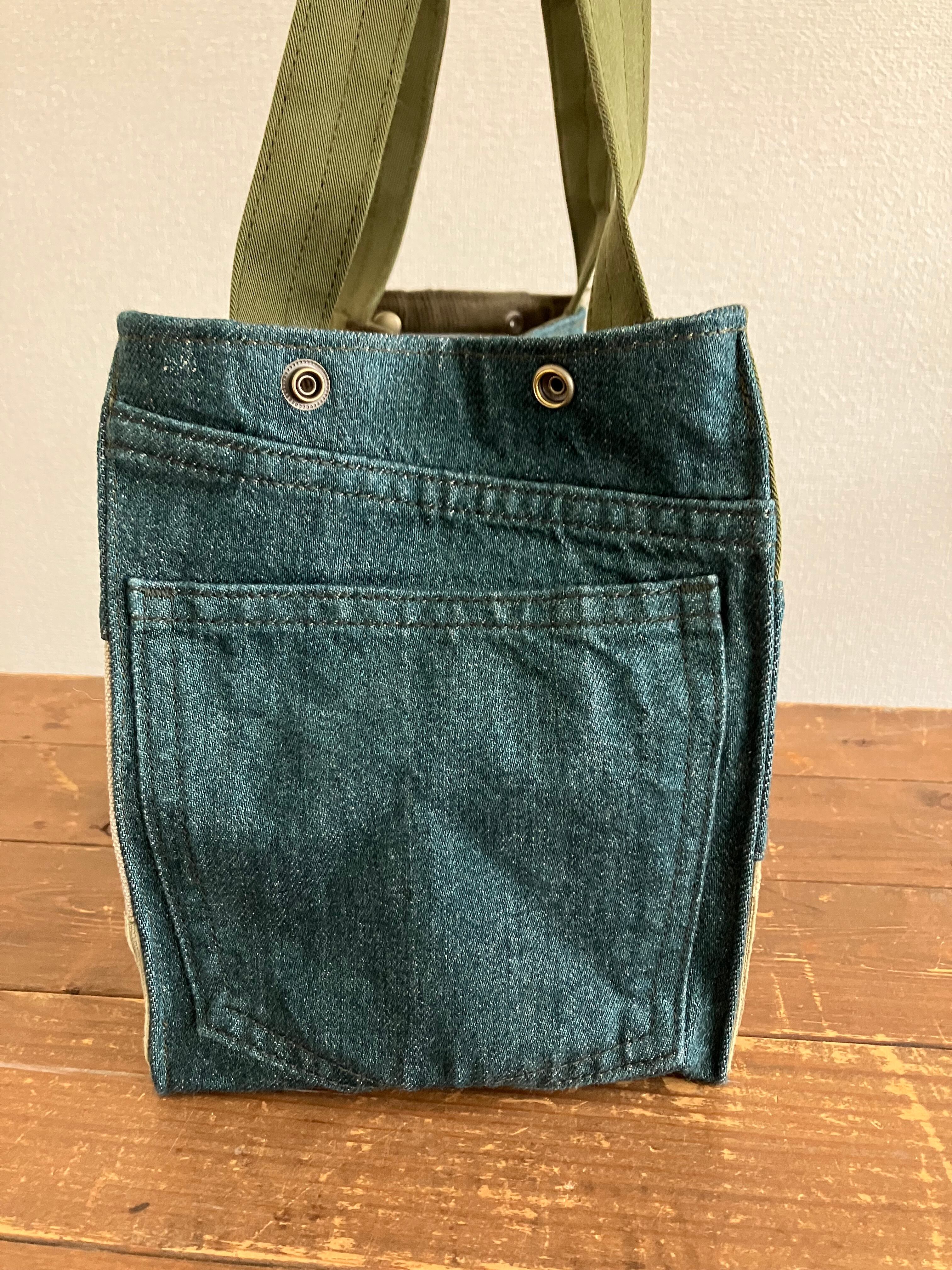 古着のデニムをパッチワークで繋ぎバッグに仕立てています。