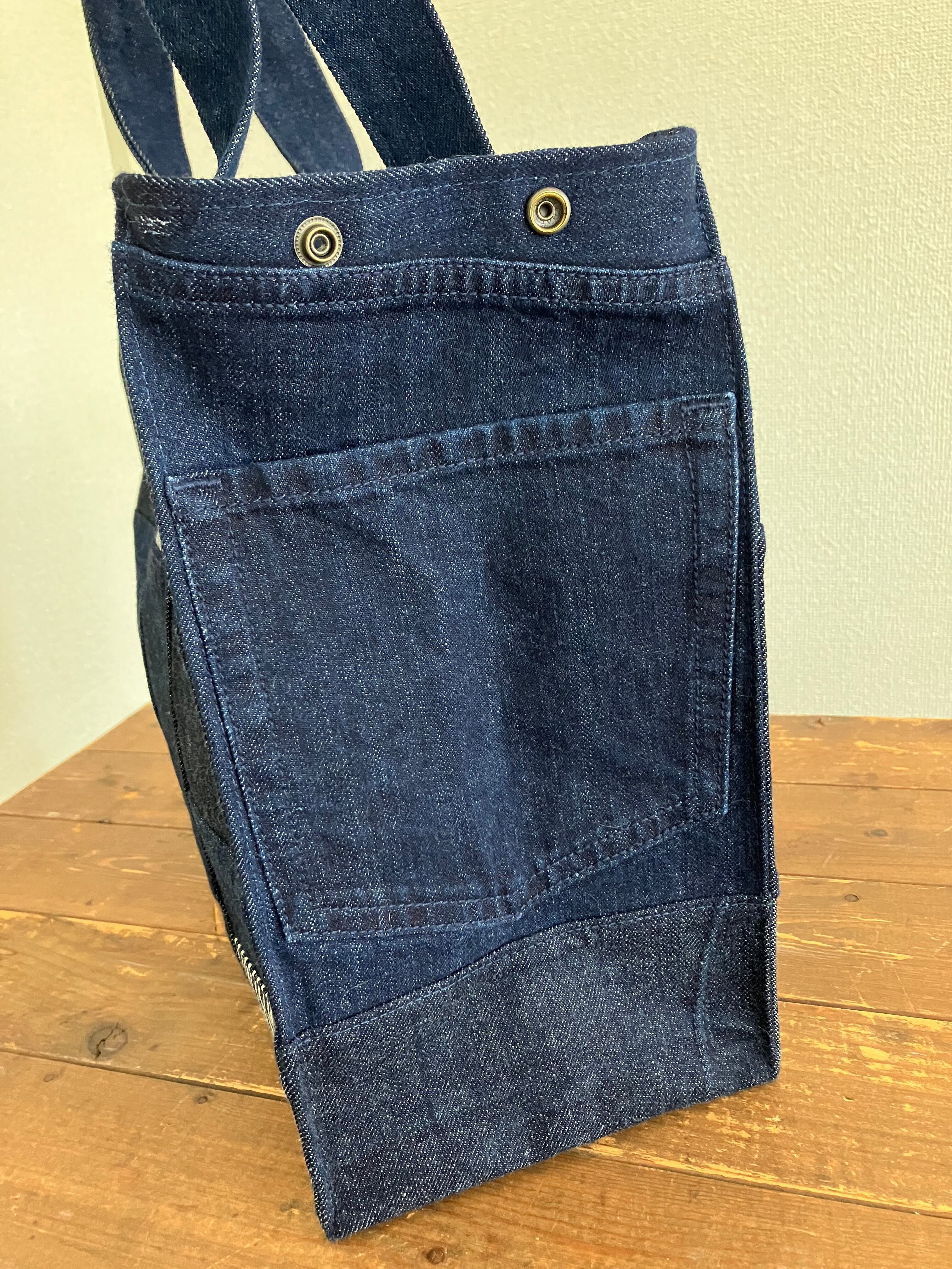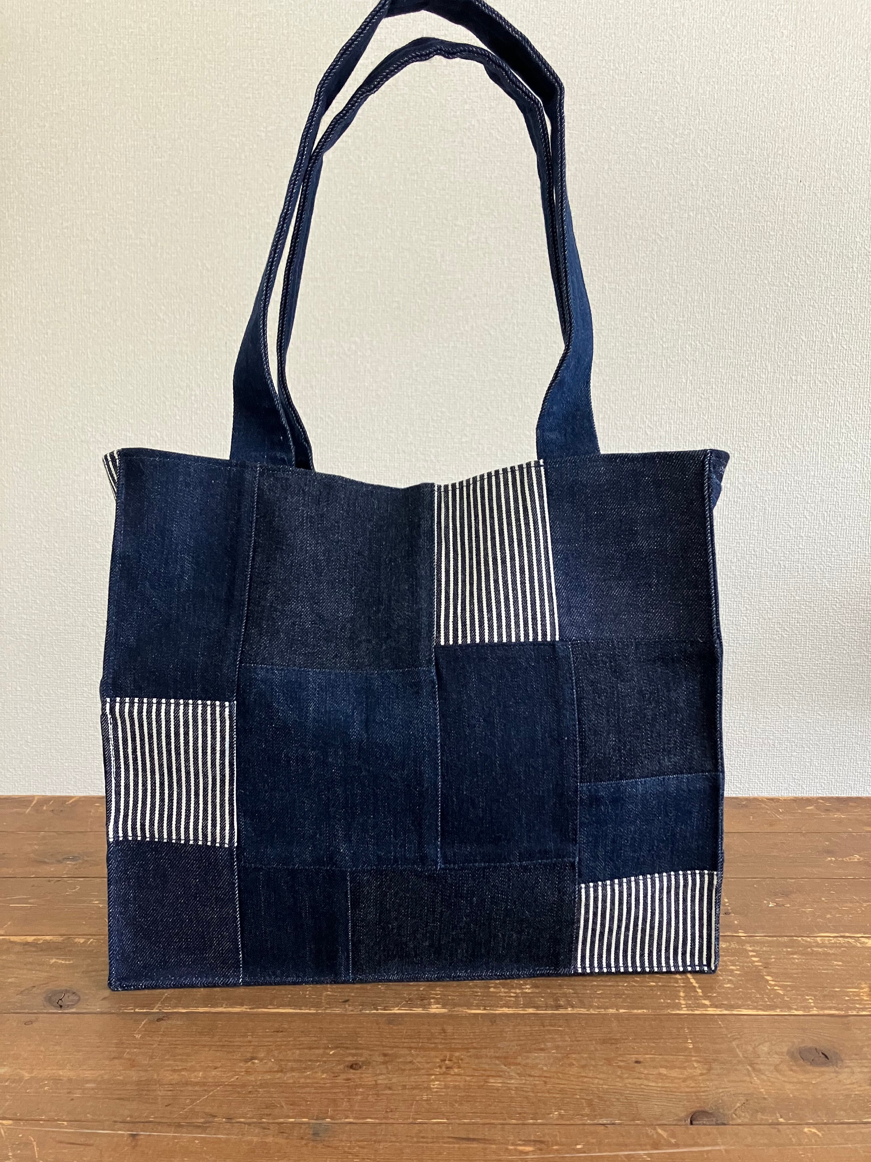 古着のデニムをパッチワークで繋ぎバッグに仕立てています。