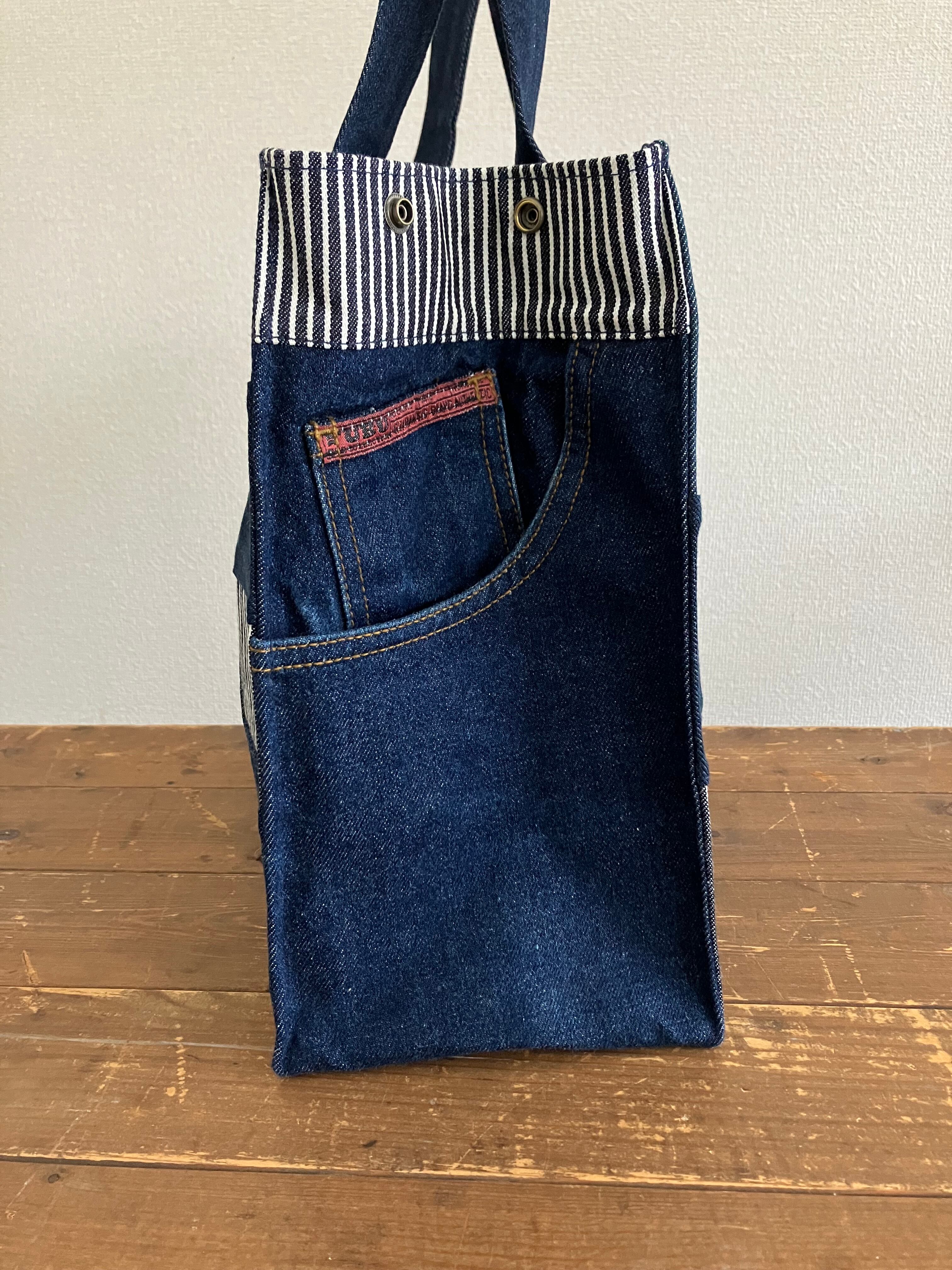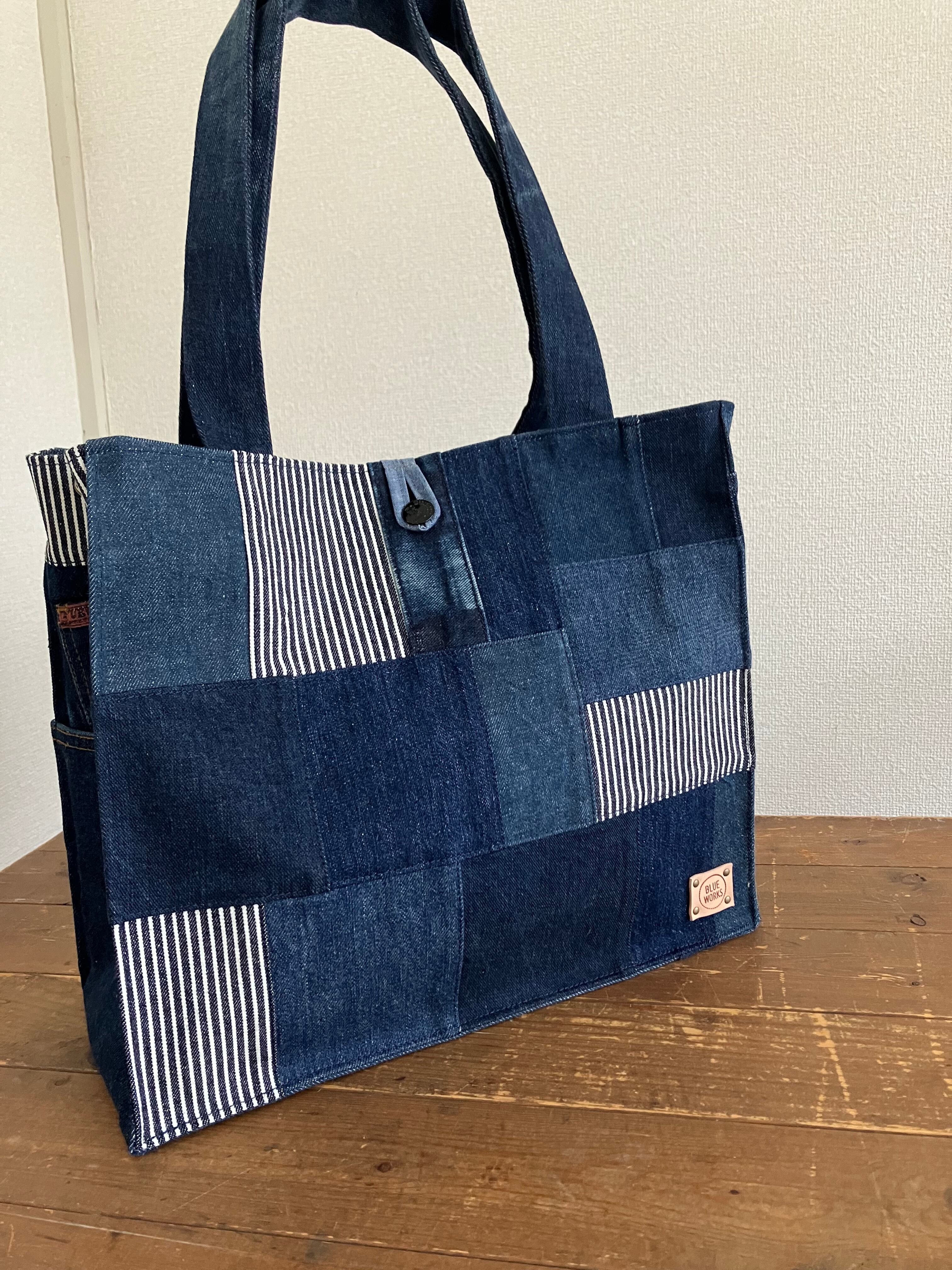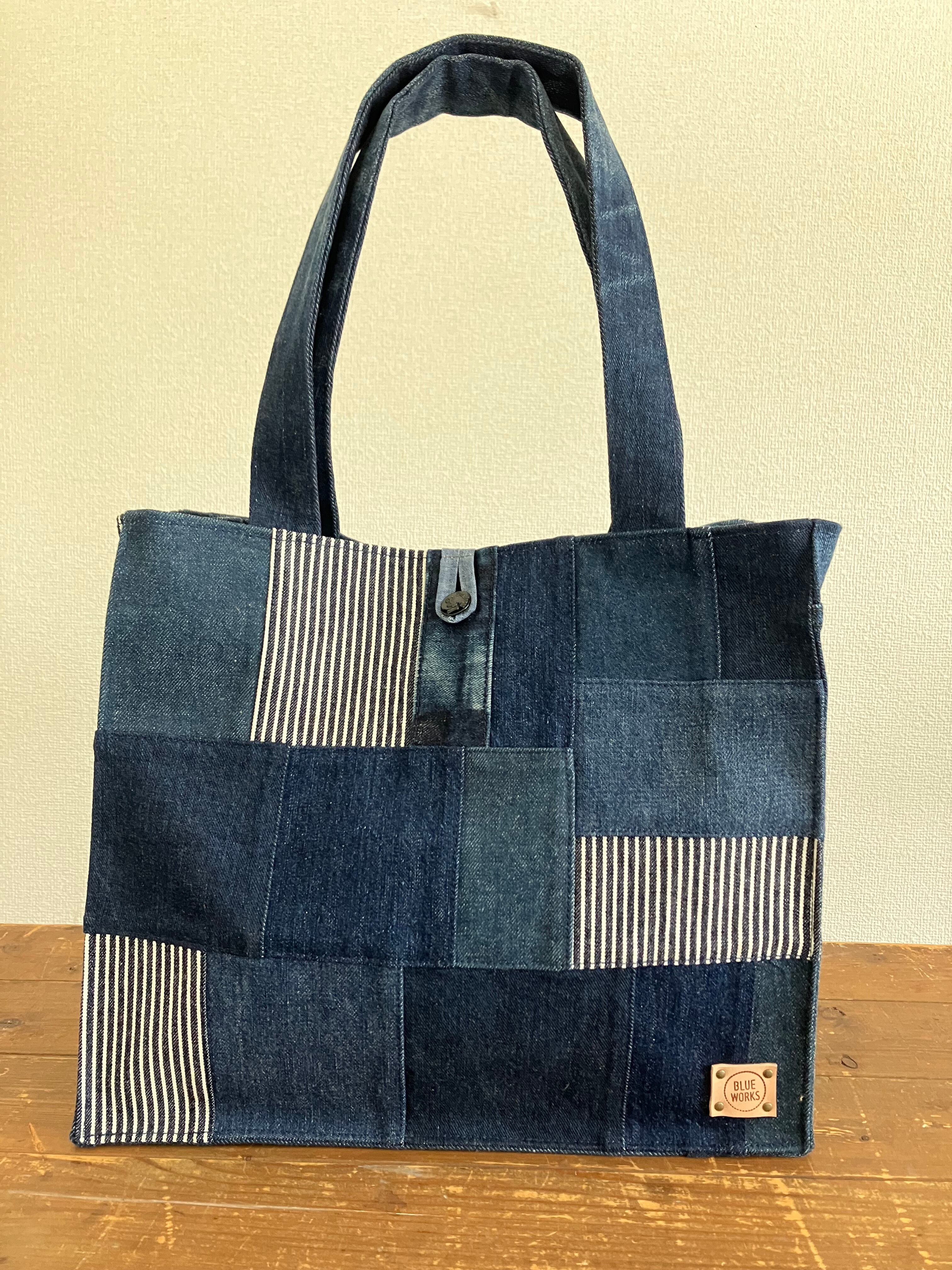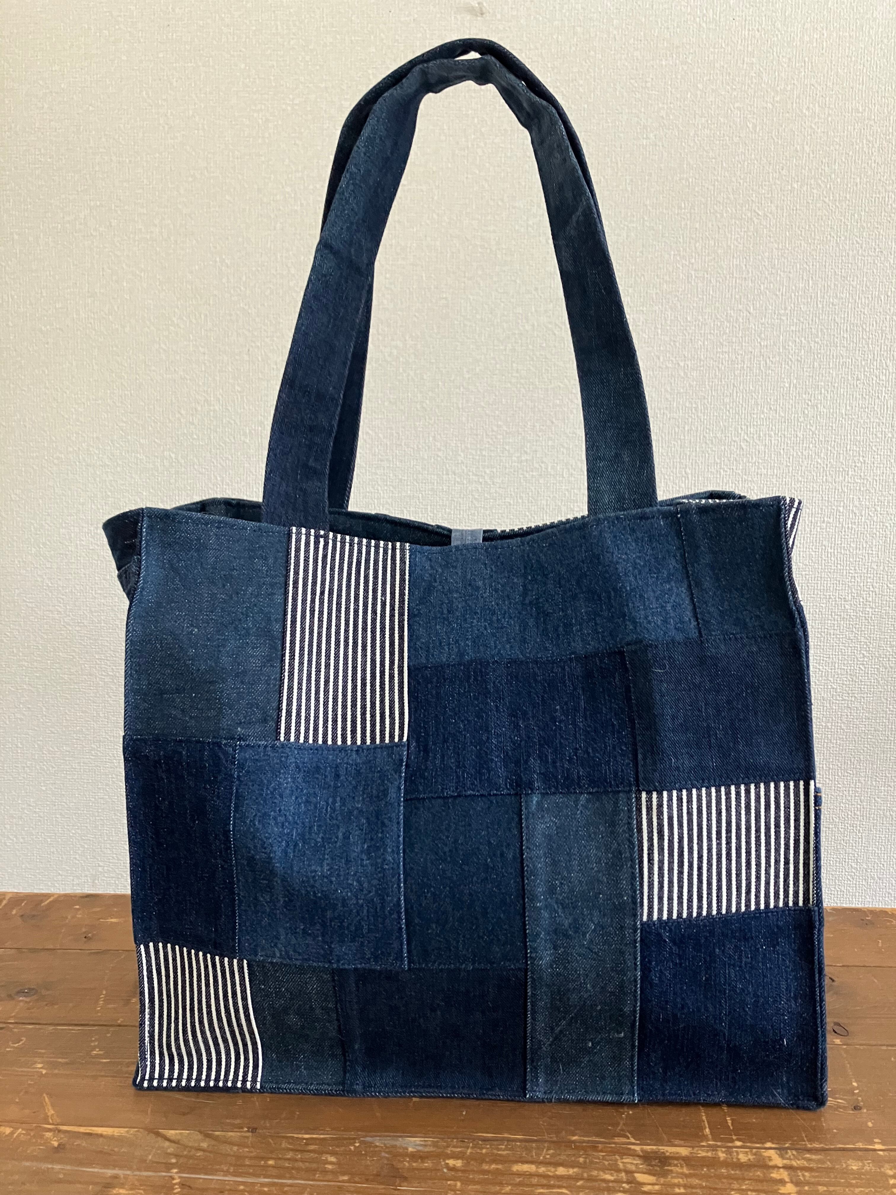 古着のデニムをパッチワークで繋ぎバッグに仕立てています。