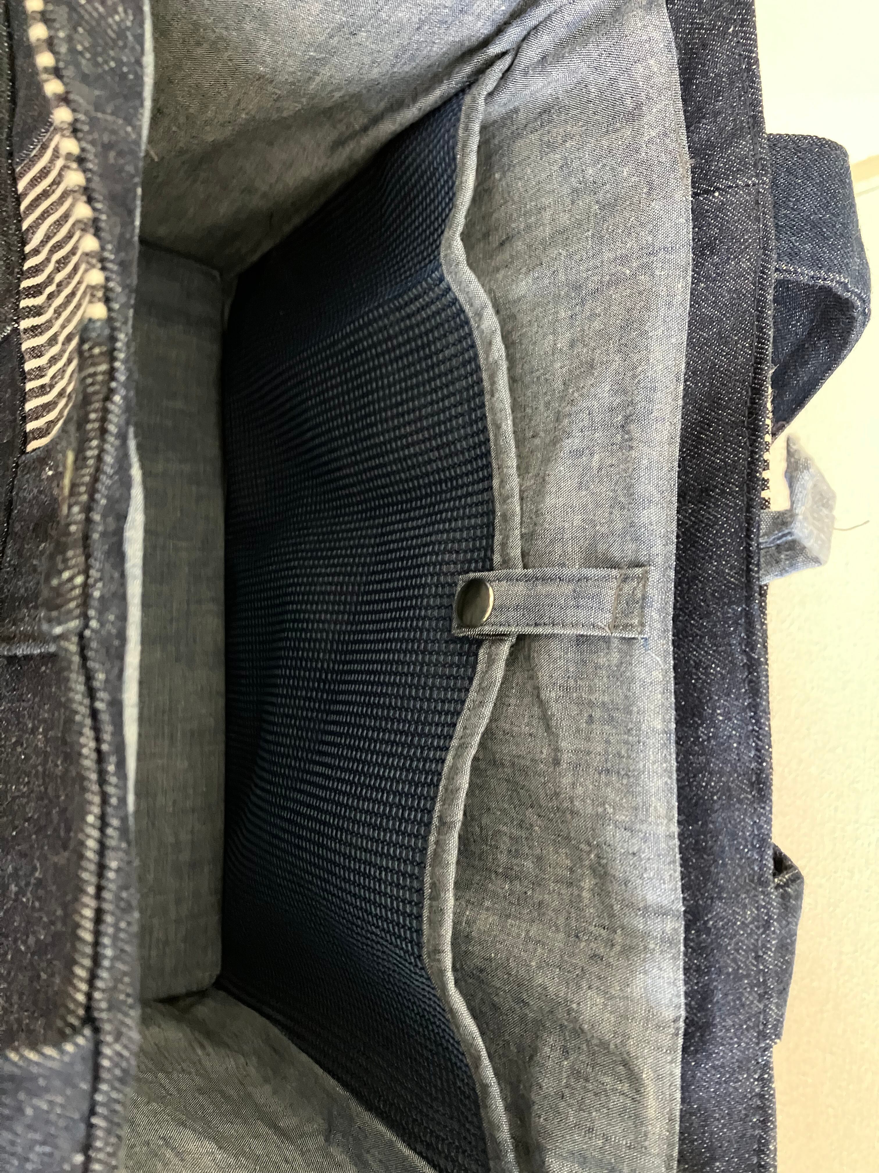 BLUEWORKSのトートバッグはサイドにジーンズのポケットが付いています。