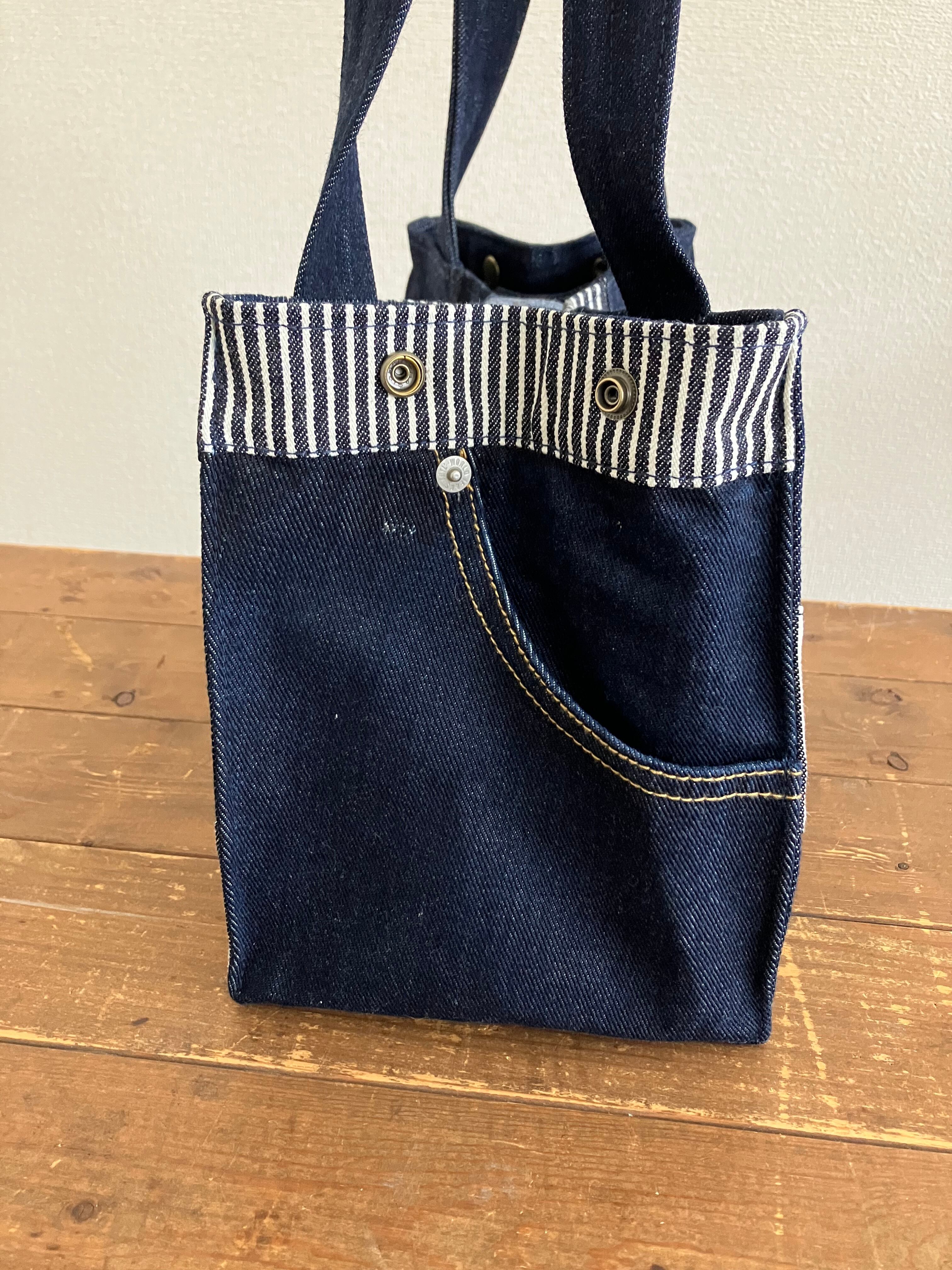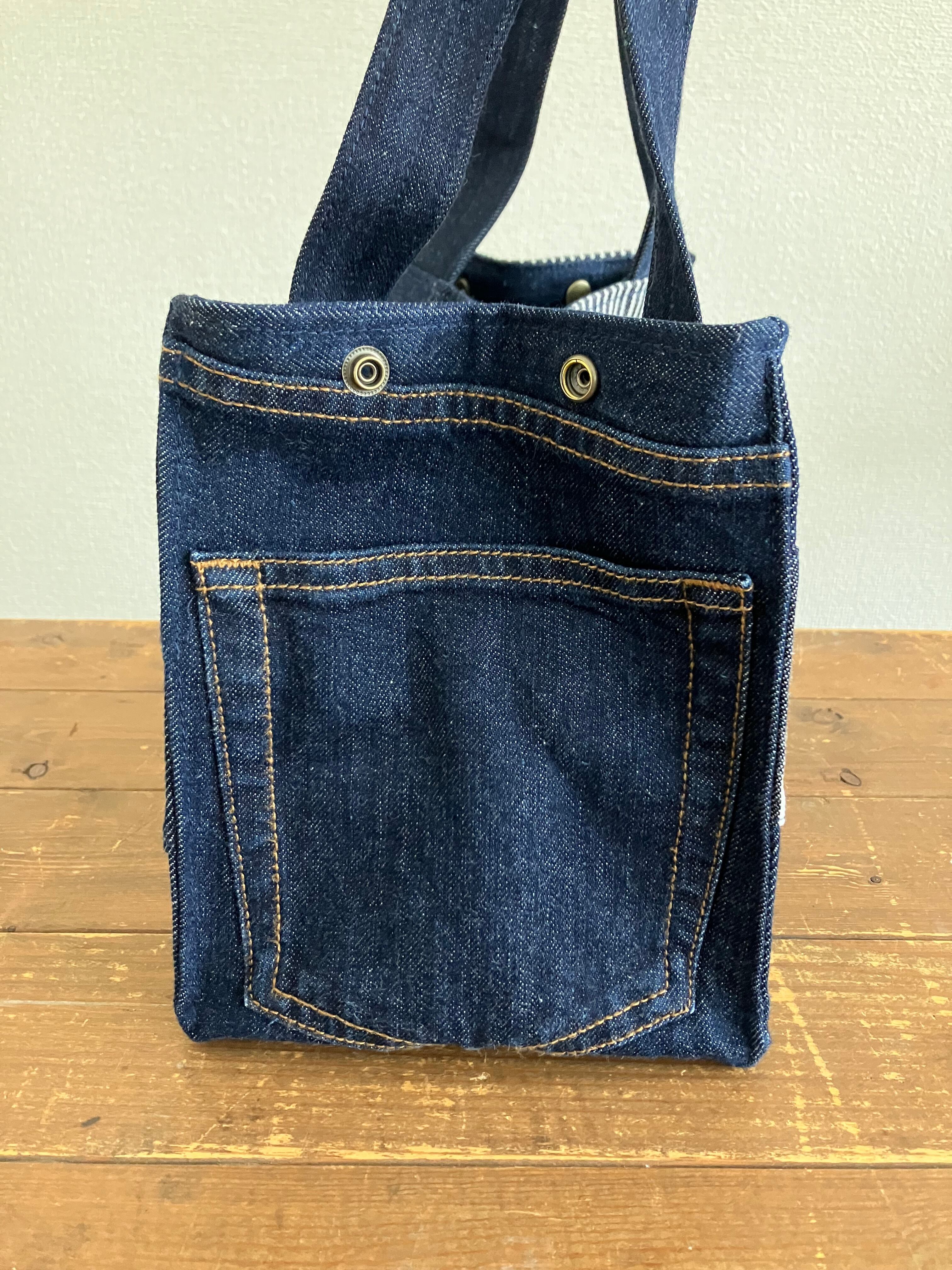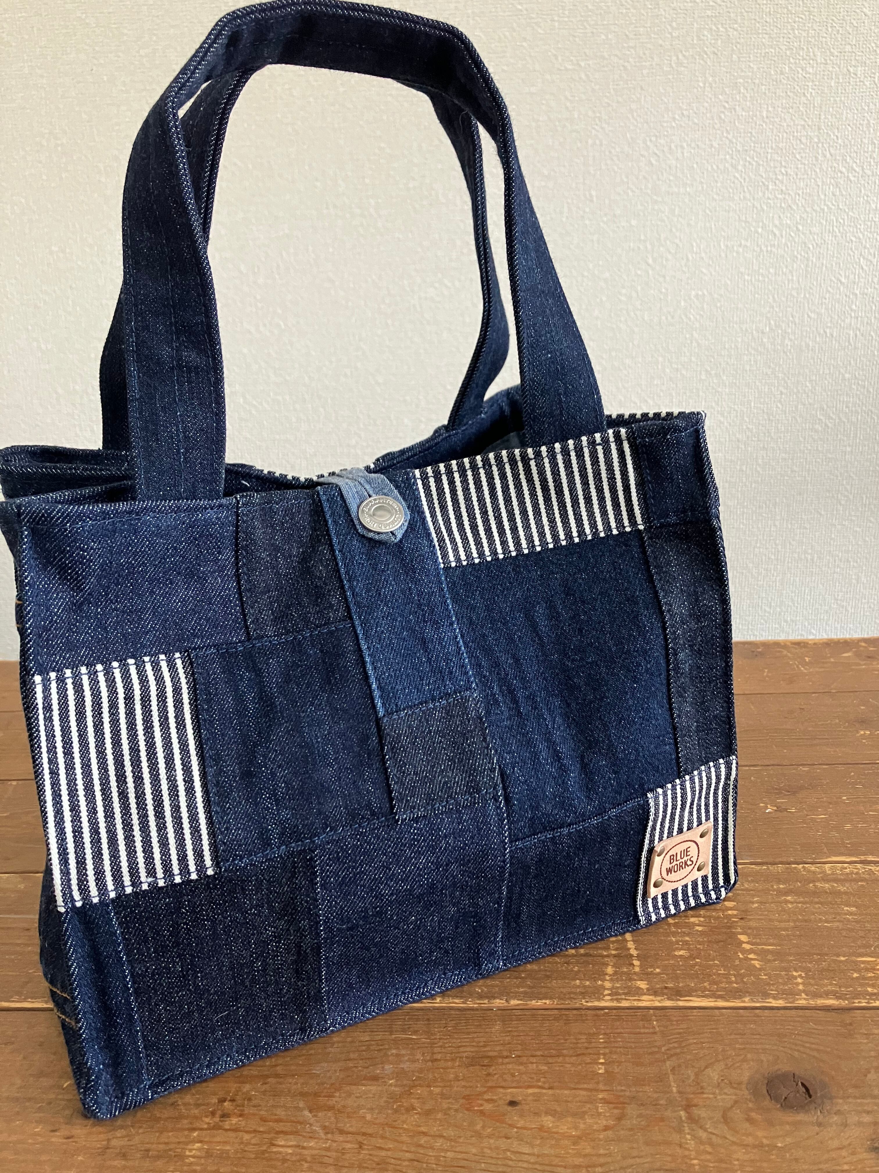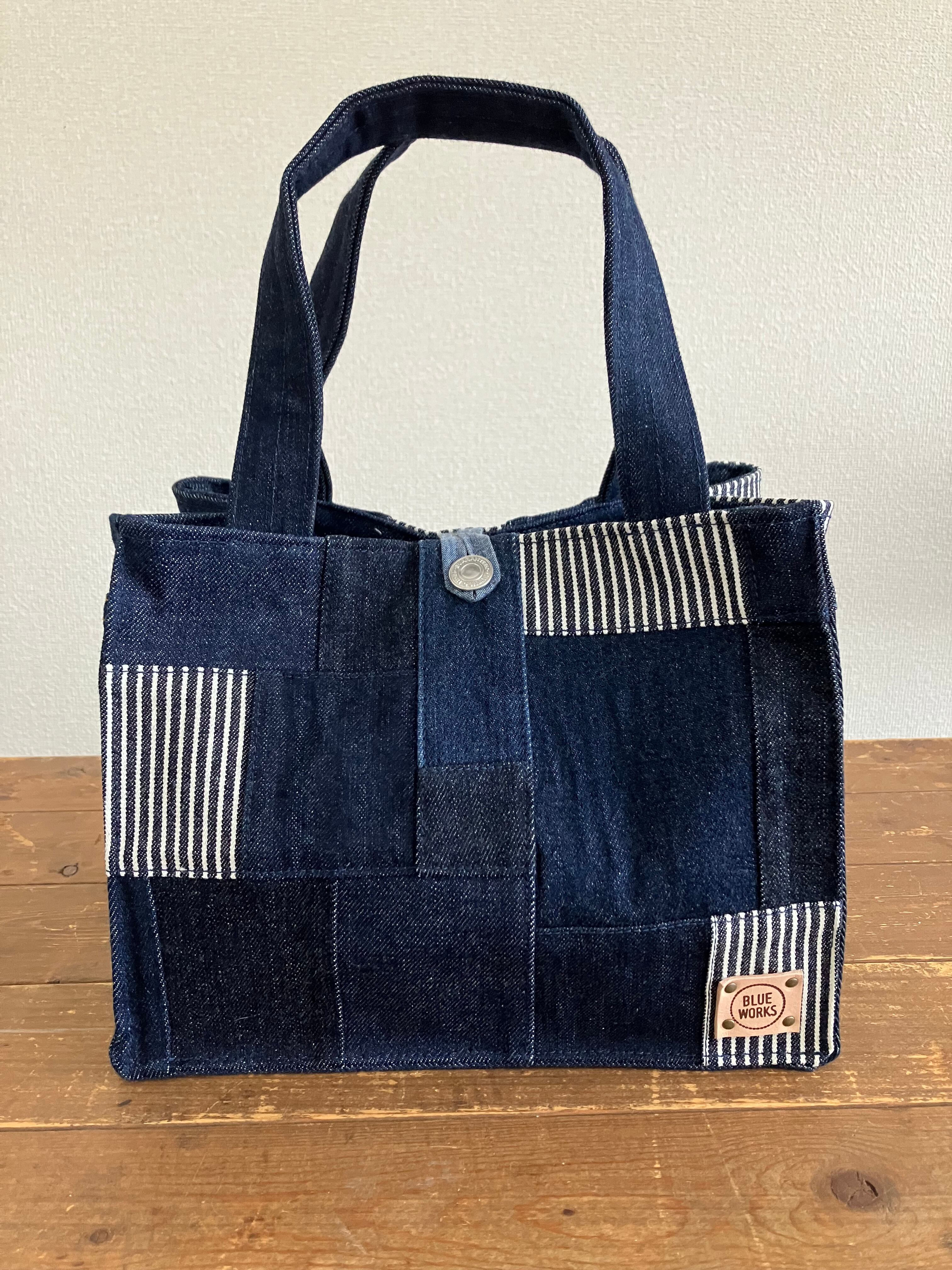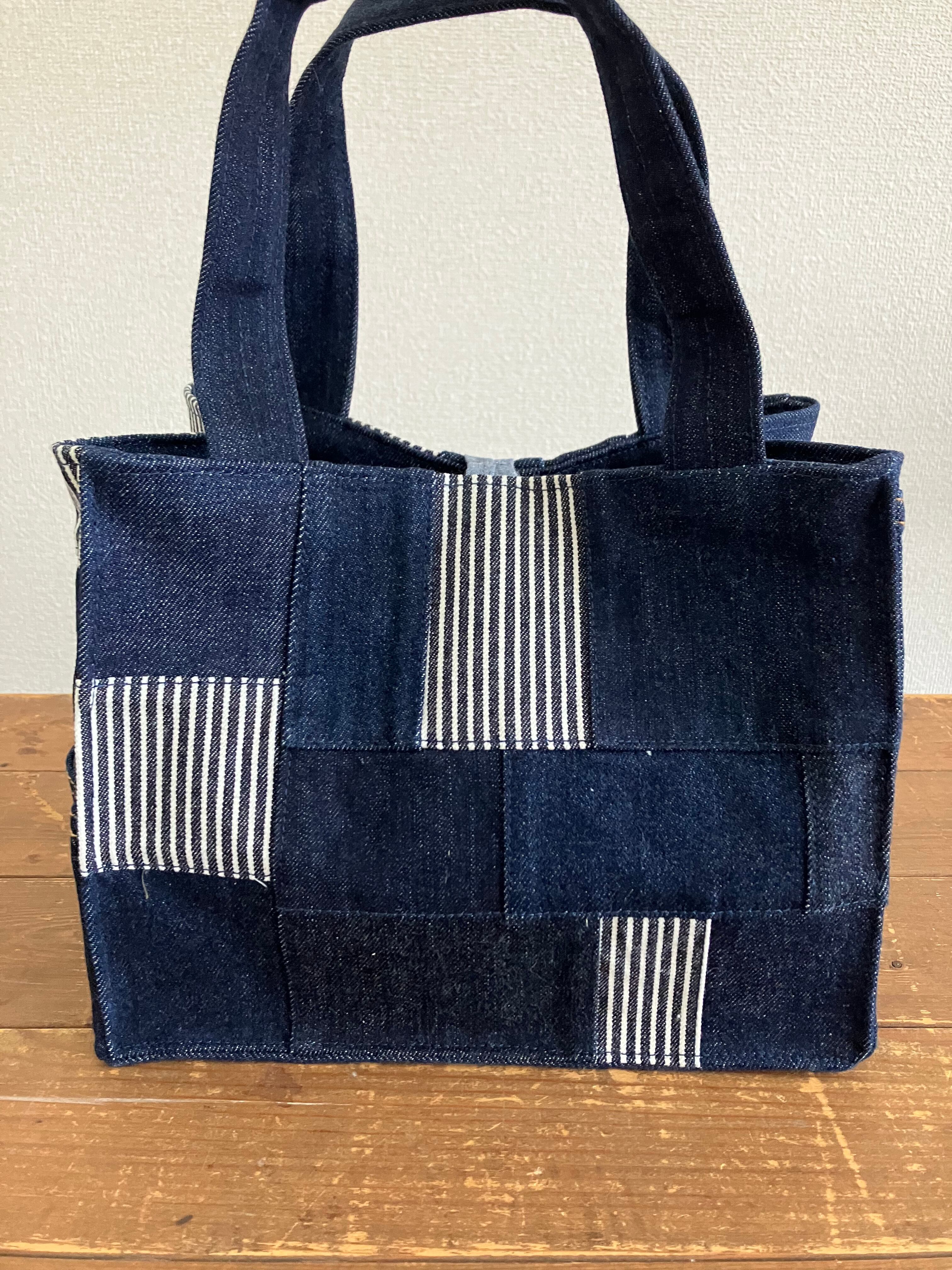 古着のデニムをパッチワークで繋ぎバッグに仕立てています。